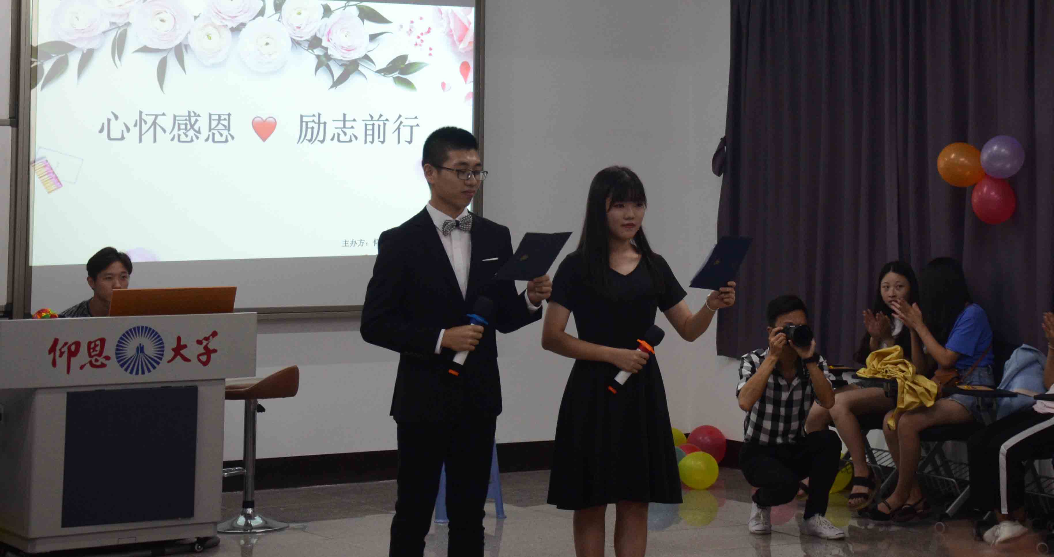 为进一步弘扬和培育中华民族感恩的传统美德,让大学生懂得感恩父母、师长、回报他人、回报社会,培养大学生成为关爱他人、服务社会、忠于祖国、道德高尚的有用之才。6月7日晚,开云kaiyun体育于普照楼205教室举办“助学 筑梦 铸人”主题晚会。出席此次晚会的有开云kaiyun体育党总支书记兼副院长胡友仁、开云kaiyun体育团委副书记曹流、开云kaiyun体育辅导员刘巧玫、陈峰、李少聪、朱婷,以及学务秘书林志荣和学院学生代表。