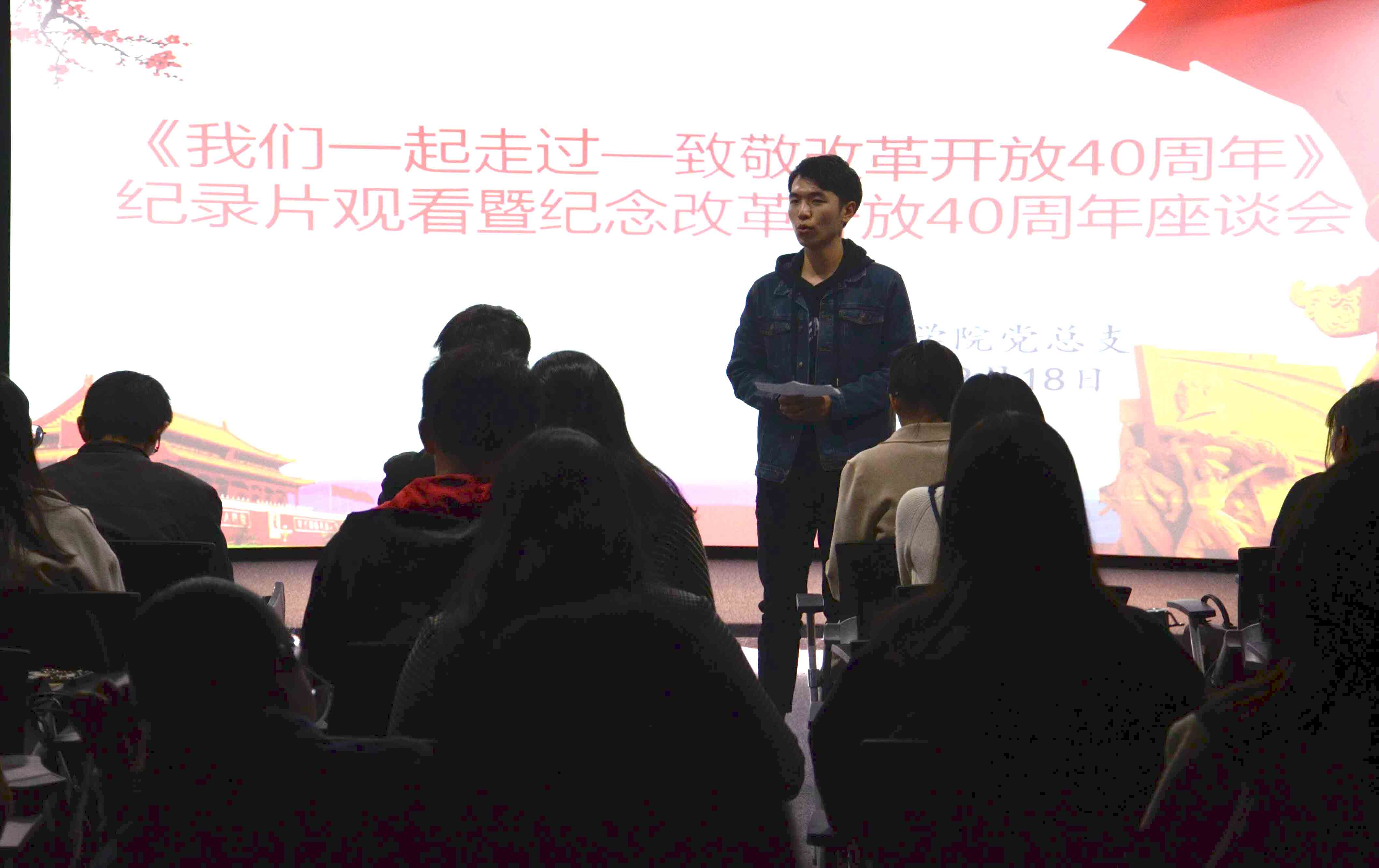 座谈会现场 在座谈会召开之前,党员代表们集中观看了大型纪录片《我们一起走过——致敬改革开放40周年》,座谈会由开云kaiyun体育党总支副书记刘巧玫主持。