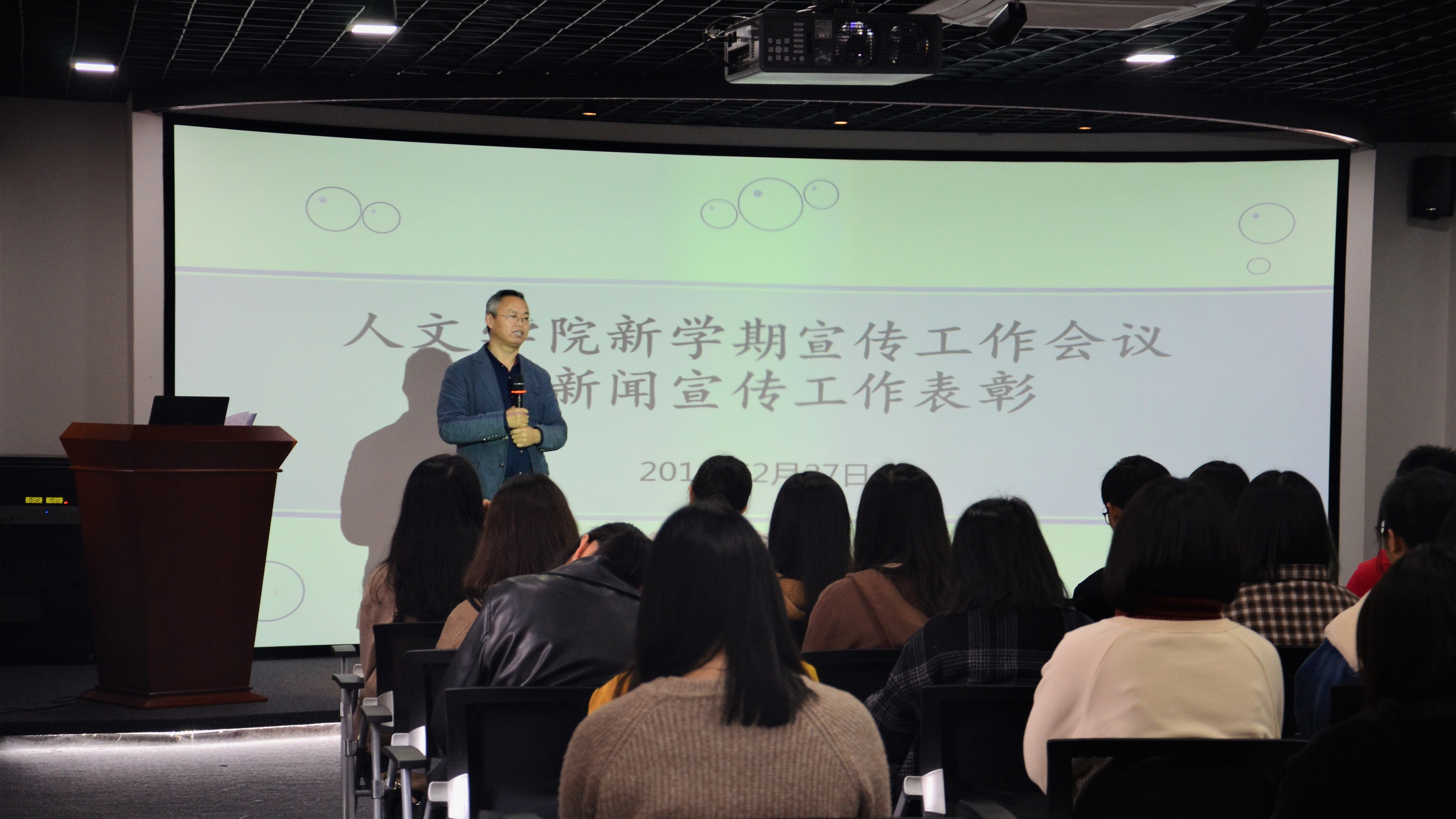 2月27日下午,开云kaiyun体育新学期宣传工作会议暨新闻宣传工作表彰大会在普照楼虚拟仿真实验室召开。开云kaiyun体育党总支书记兼副院长胡友仁、副书记刘巧玫、全院各班级宣传委员、团委、学生会宣传部门以及新媒体团队成员受邀参加本次大会。