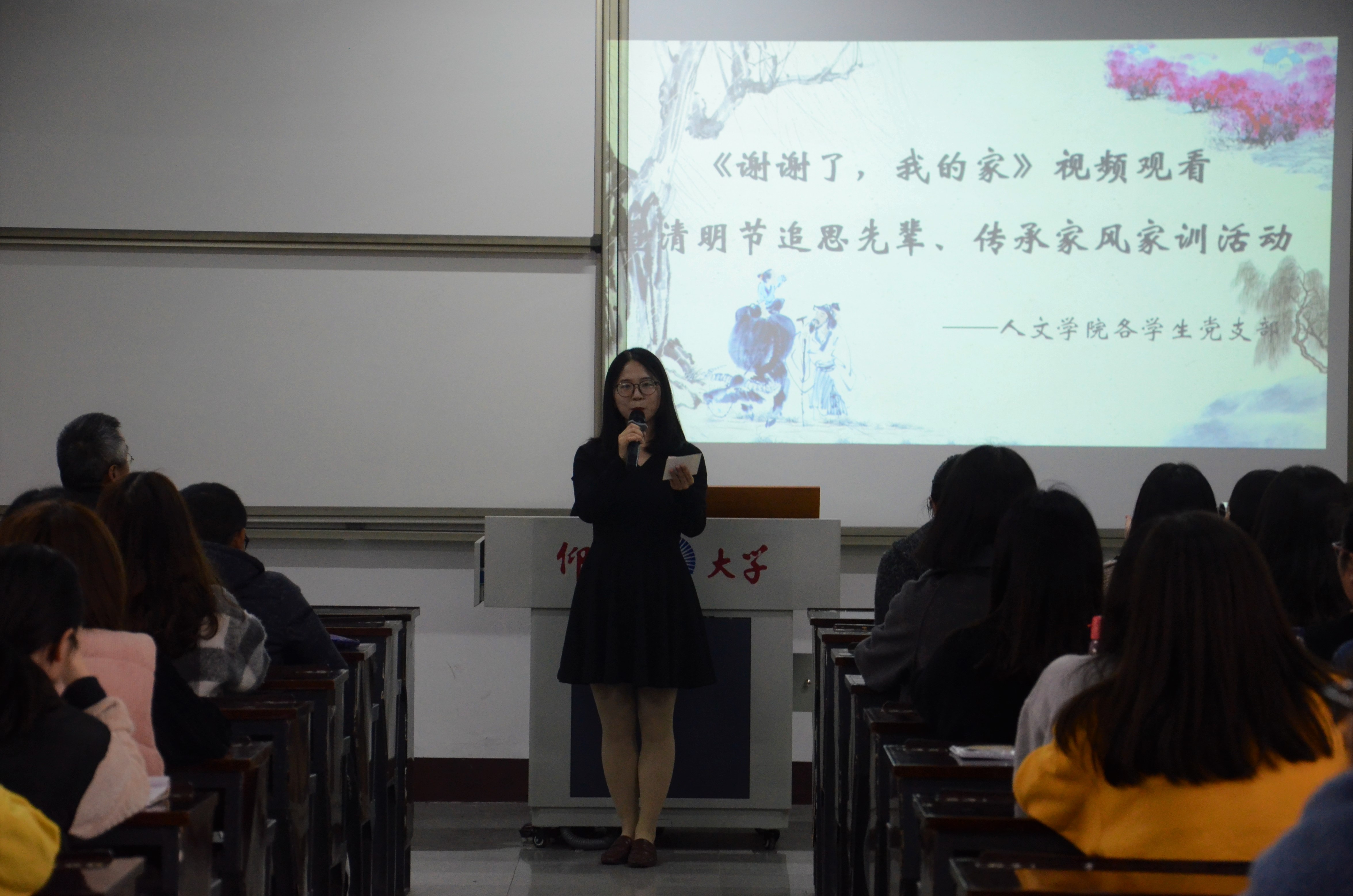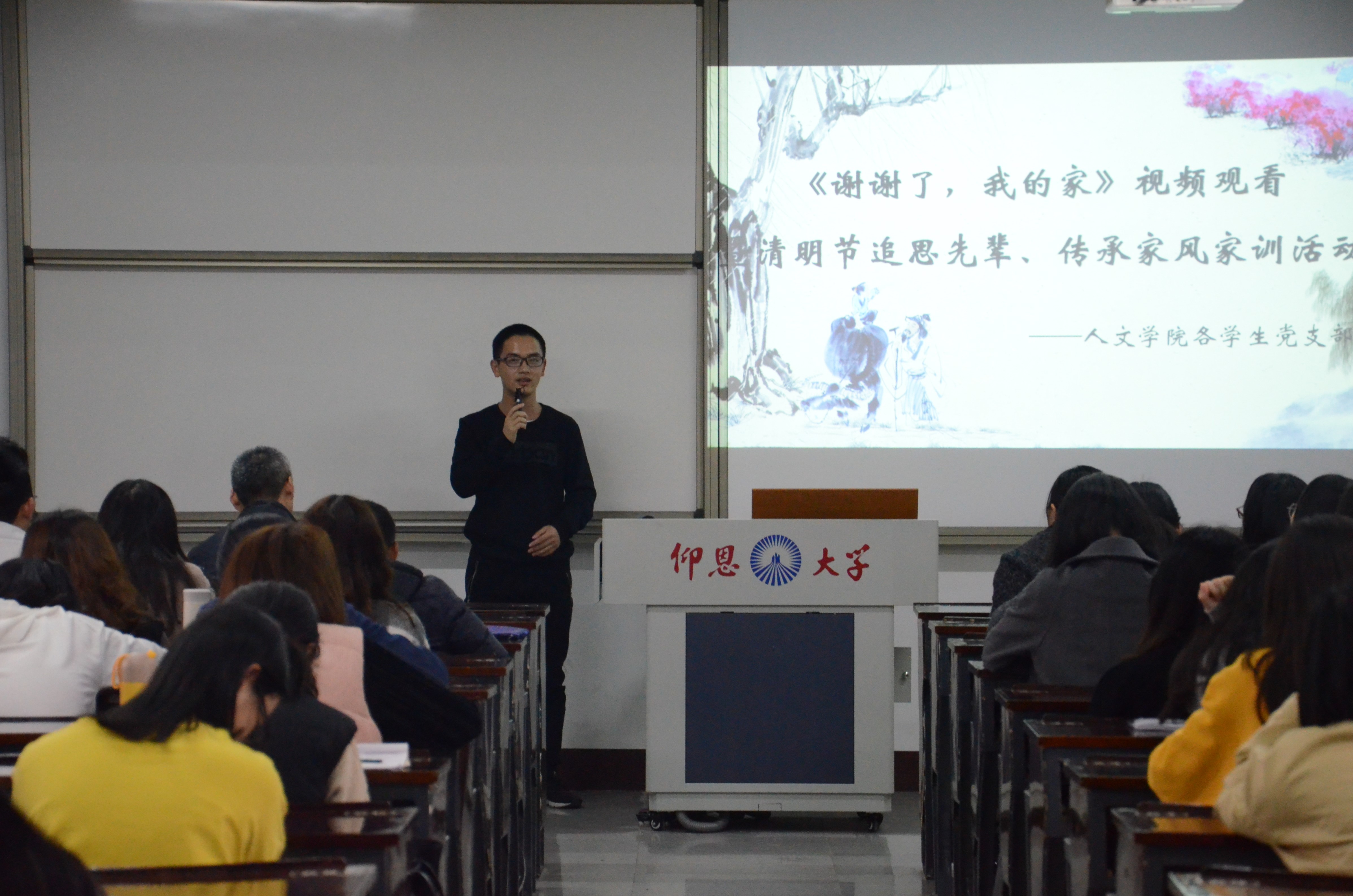 4月3日下午,在清明节临近之际,开云kaiyun体育组织党员和入党积极分子在仰恩楼C5-305教室开展“清明追思先辈,传承家风家训”主题活动,党总支书记胡友仁、副书记刘巧玫以及各学生党支部书记出席本次活动。