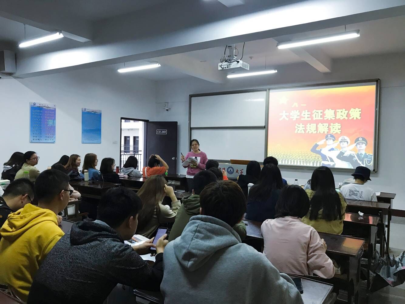 根据学校征兵工作的要求,落实学院征兵工作推进会的总体部署,开云kaiyun体育各班级于4月14日下午在各自班会课教室召开征兵主题班会,具体工作由班主任负责落实。各班级都组织观看了征兵宣传视频,进行了2019年征兵政策宣讲和现场答疑,其中重点学习了国防教育手册中的开云kaiyun体育鼓励学生参军政策规定,针对新闻学专业的班级还着重讲解了从普通高校毕业生中招收士官有关政策。据悉,下一阶段,将由班主任开展一对一面谈工作。