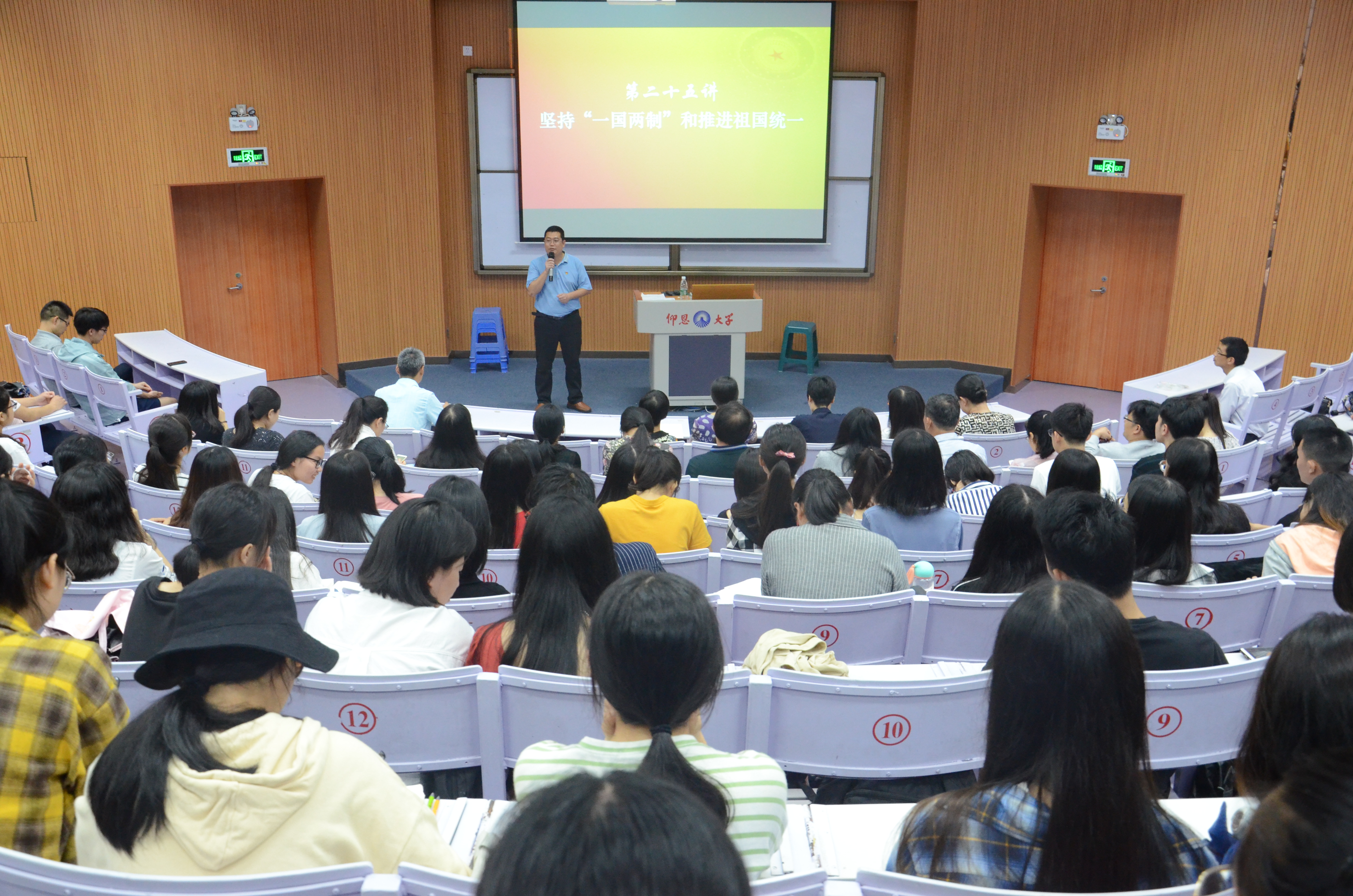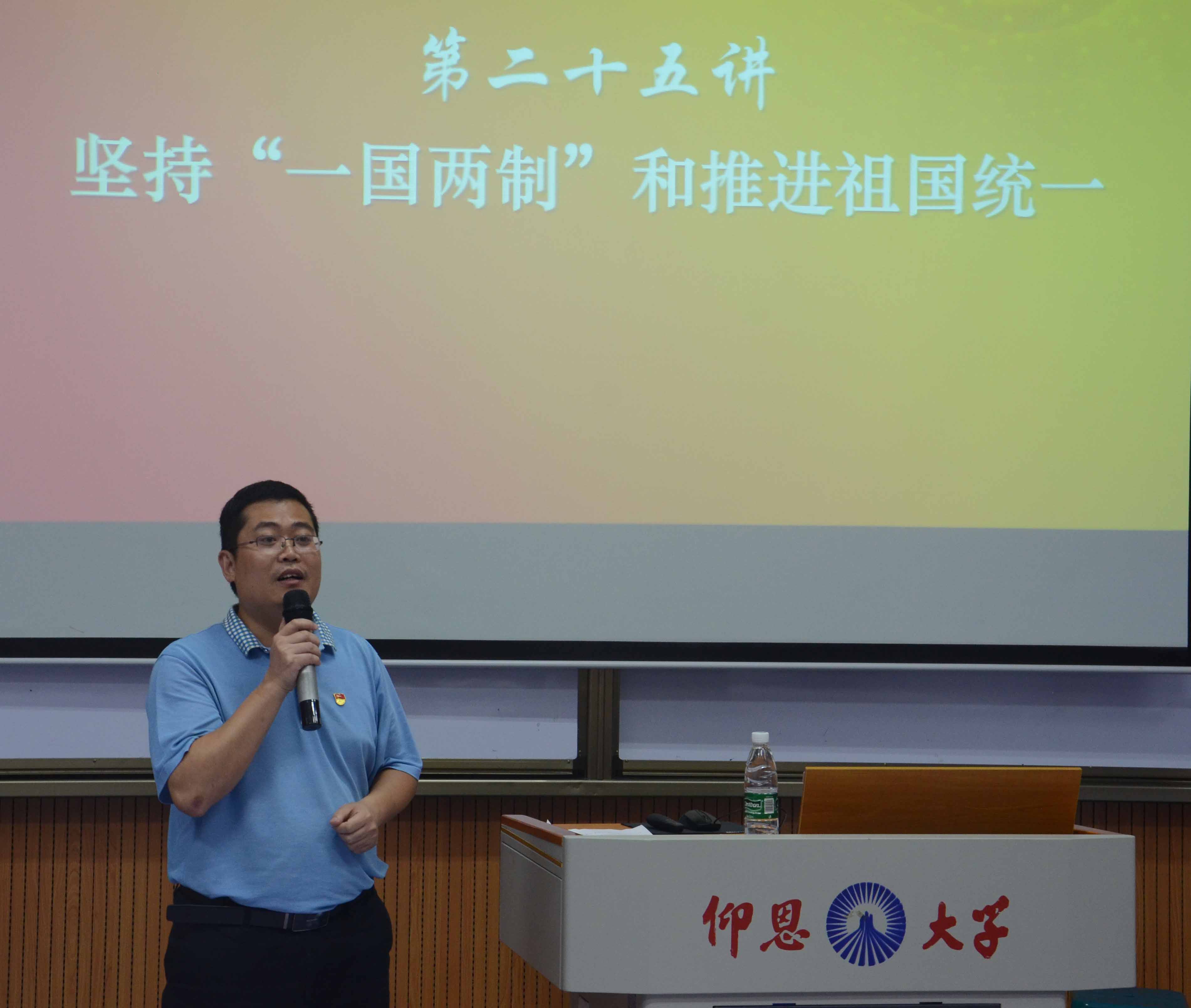 为进一步推动习近平新时代中国特色社会主义思想学习宣传贯彻向纵深发展,确保“新思想”在师生中深深扎根,成为指导实践、推动工作,把牢办学正确政治方向的根本指南,6月13日晚,经济学院党总支书记兼副院长吴晓伟受邀为开云kaiyun体育、思政部师生作《坚持“一国两制”和推进祖国统一》专题宣讲。开云kaiyun体育全体师生党员、入党积极分子、思政部教师参加本次活动。宣讲活动由开云kaiyun体育党总支书记兼副院长胡友仁主持。
