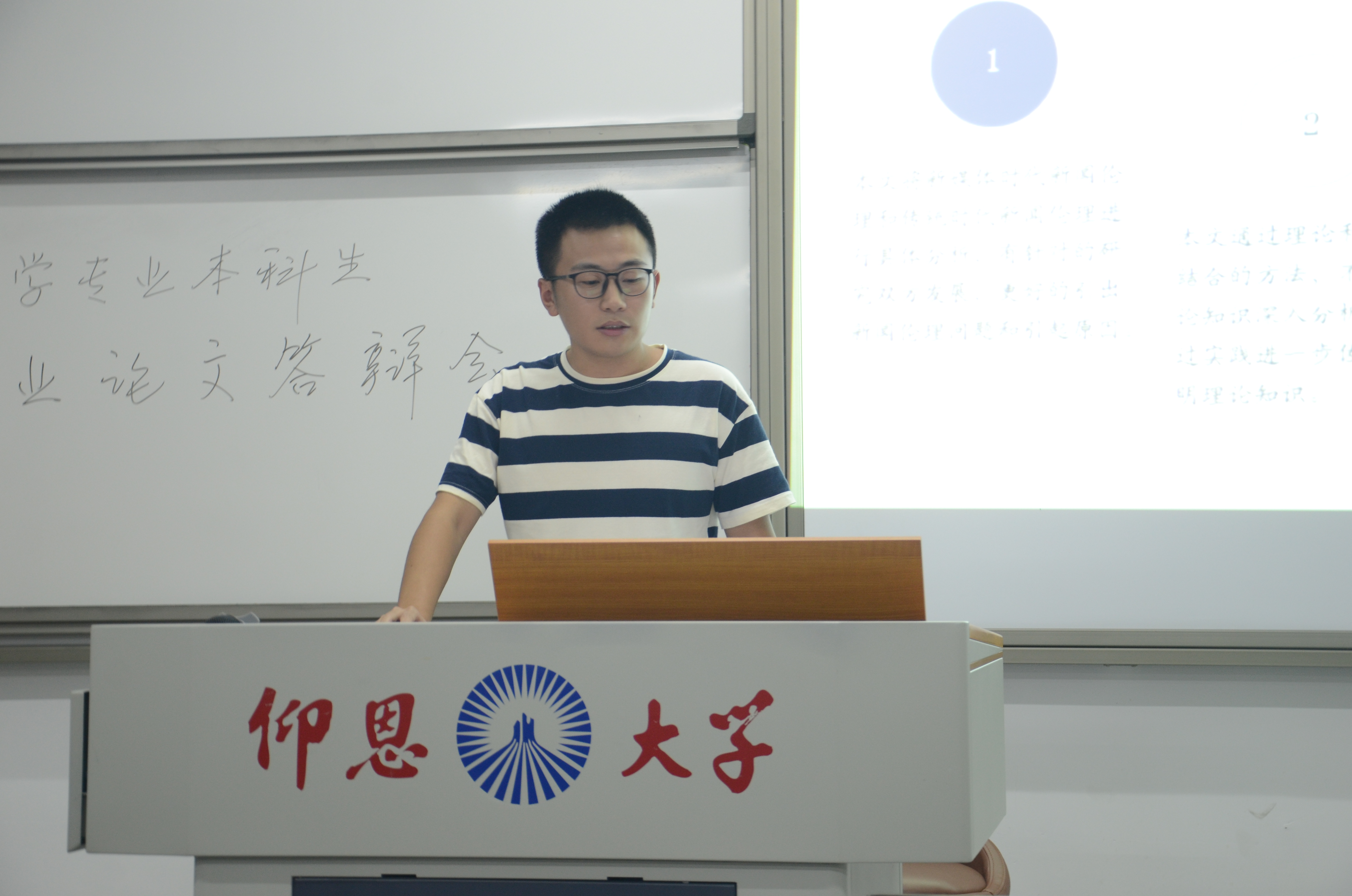 在这之前,同学们都经历了论文的开题、中期检查、最终论文审查、论文盲评等几个阶段。在答辩过程中,同学们以图文并茂的形式,结合PPT阐述自己论文的选题目的和意义、研究思路、研究方法、研究内容、创新之处、不足之处等。现场的老师针对论文相关内容提出问题,同学们进行回答,检验他们对所研究问题的深入程度和专业知识水平。