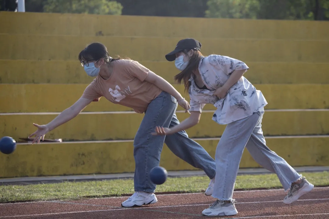 本次比赛为个人赛,要求参赛者五人一组,依次站在犯规线后,单手拿球,轮流投球撞击矿泉水瓶。每人有两次投球机会,累计击倒矿泉水瓶多的同学则可进入下一轮比赛。此次活动道具虽然简单,但是参赛选手无论“摆球”、“出手”、“走步” 每一个击球动作都有模有样,他们努力拼搏,奋勇向上的精神可嘉。