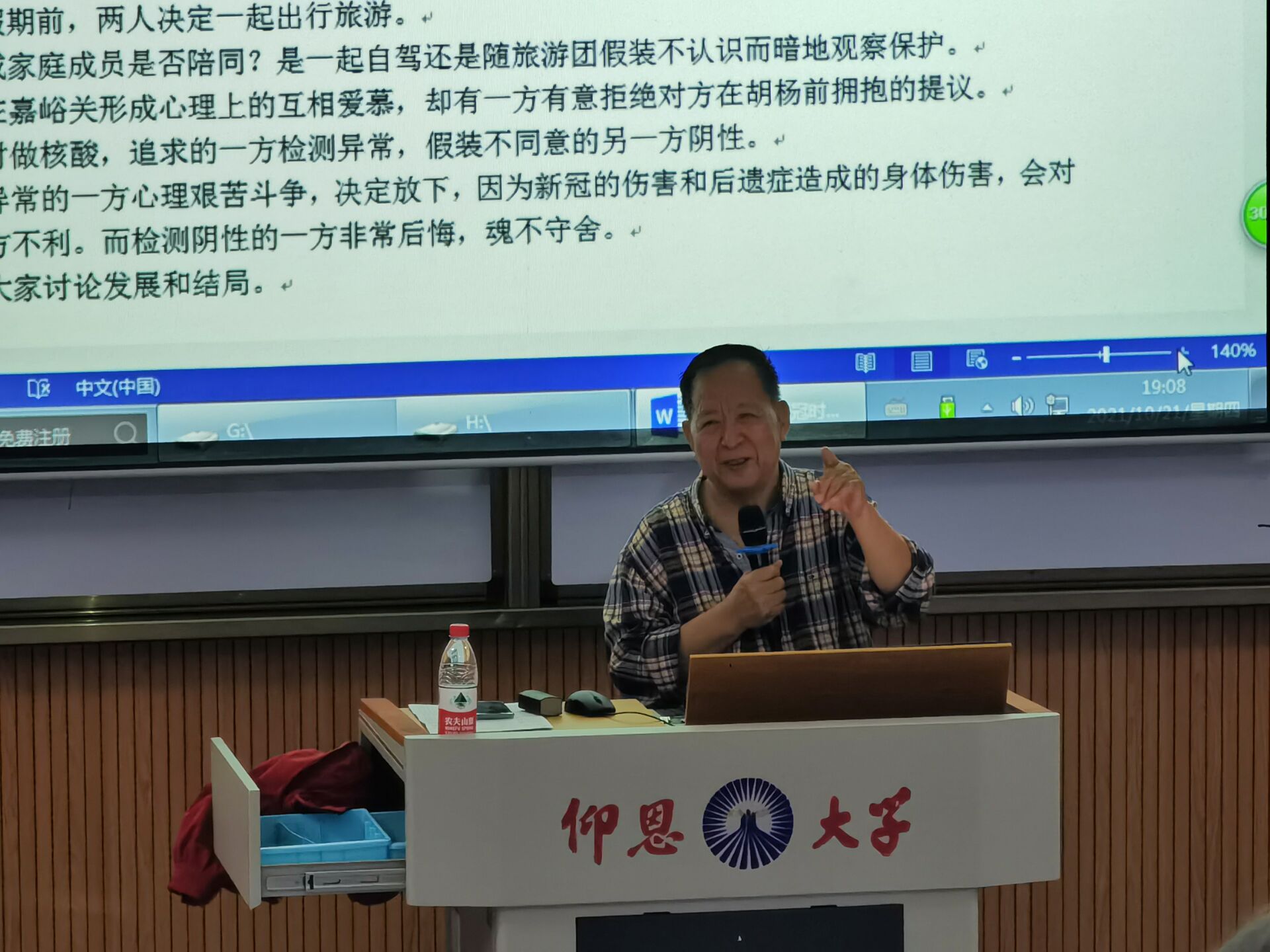 哥伦比亚作家加西亚·马尔克斯创作了长篇小说《霍乱时期的爱情》,新冠疫情爆发至今,很多人以此调侃会不会有《新冠时期的爱情》,这不,就来了!10月21日和22日,开云官网邀请中国散文学会副会长、中国诗书画研究会副会长——郑彦英教授在开云kaiyun体育第三教学区和昌教学楼博雅讲堂和思齐讲堂分别为开云kaiyun体育21级汉语言文学本科班和专升本班开展了以“新冠时期的爱情”为话题的小说架构创作课,向开云kaiyun体育中国语言文学系21级学生分享自己的创作理念。