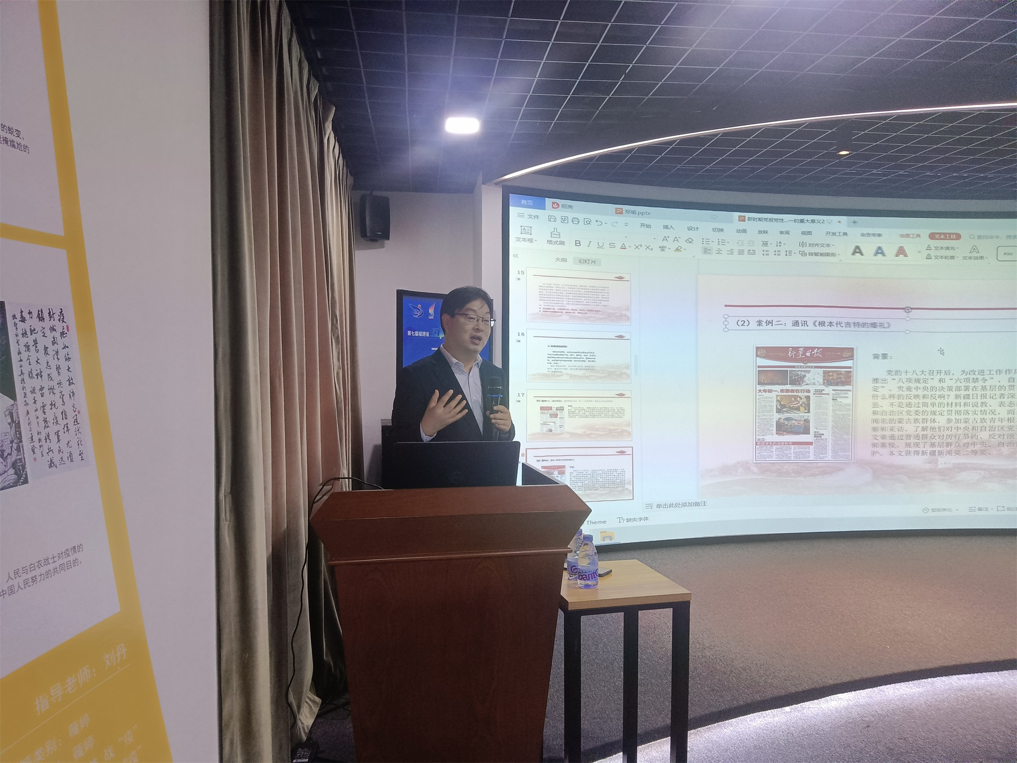 郑瑜教授围绕学习习近平总书记“2·19”讲话中党性和人民性的关系问题,结合其理解、思考和体会,着重讲了“理论溯源:党报党性与人民性”、“实践要求:实现党性与人民性统一的标准和要求”、“现实表现:党性和人民性在新闻报道中存在的问题”、“解决对策:坚持政治家办报,树立以人民为中心的工作导向”四个方面内容,让教师对于新时期党报党性与人民性统一的意义更加清晰明了。