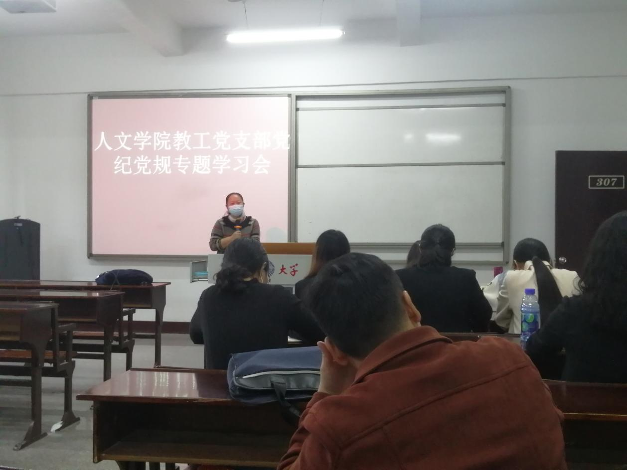 依照开云kaiyun体育党总支学习安排,11月17日下午4:00 ,开云kaiyun体育教工党支部在普照楼307教室召开关于党纪党规专题学习会议。会议由教工党支部书记刘丹同志主持。