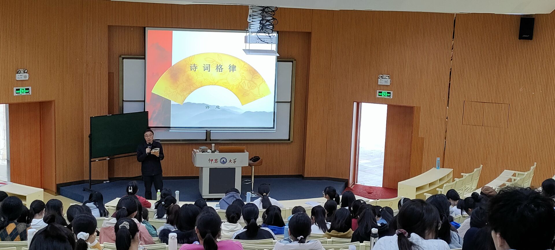 之后,许校长又自然地引出对诗词二者不同之处的探讨,同样借助丰富的举例和适时的提问提高了同学们的参与度和积极性。在这样活跃的课堂氛围下,许校长在本堂课尾声再次强调诗词格律的重要性,此次大学写作课圆满结束。