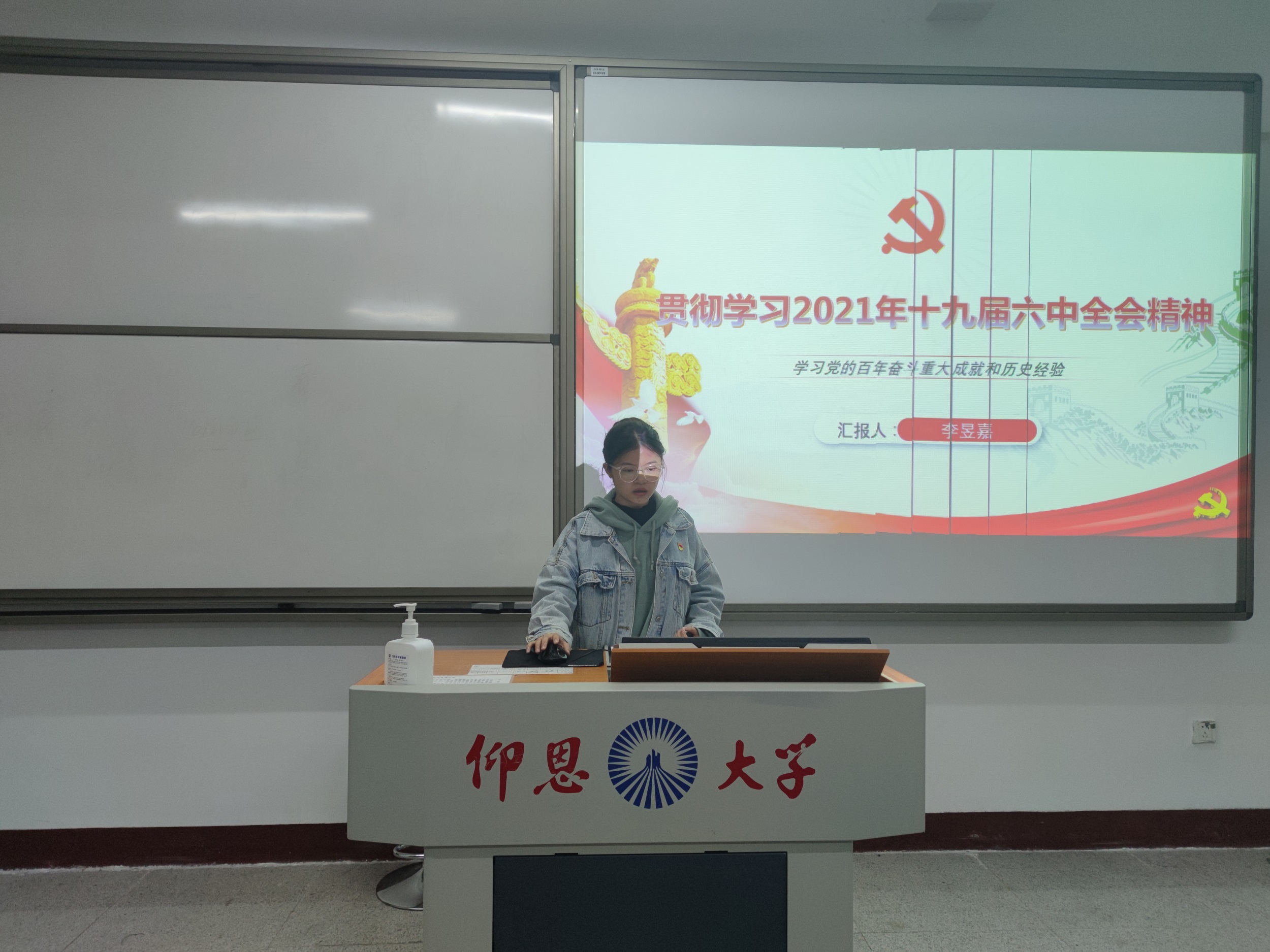 为将学习贯彻党的十九届六中全会精神持续推向深入,11月23日晚上,开云kaiyun体育专升本学生党支部于仰恩楼C1-307开展“十九届六中全会精神”学习分享活动。