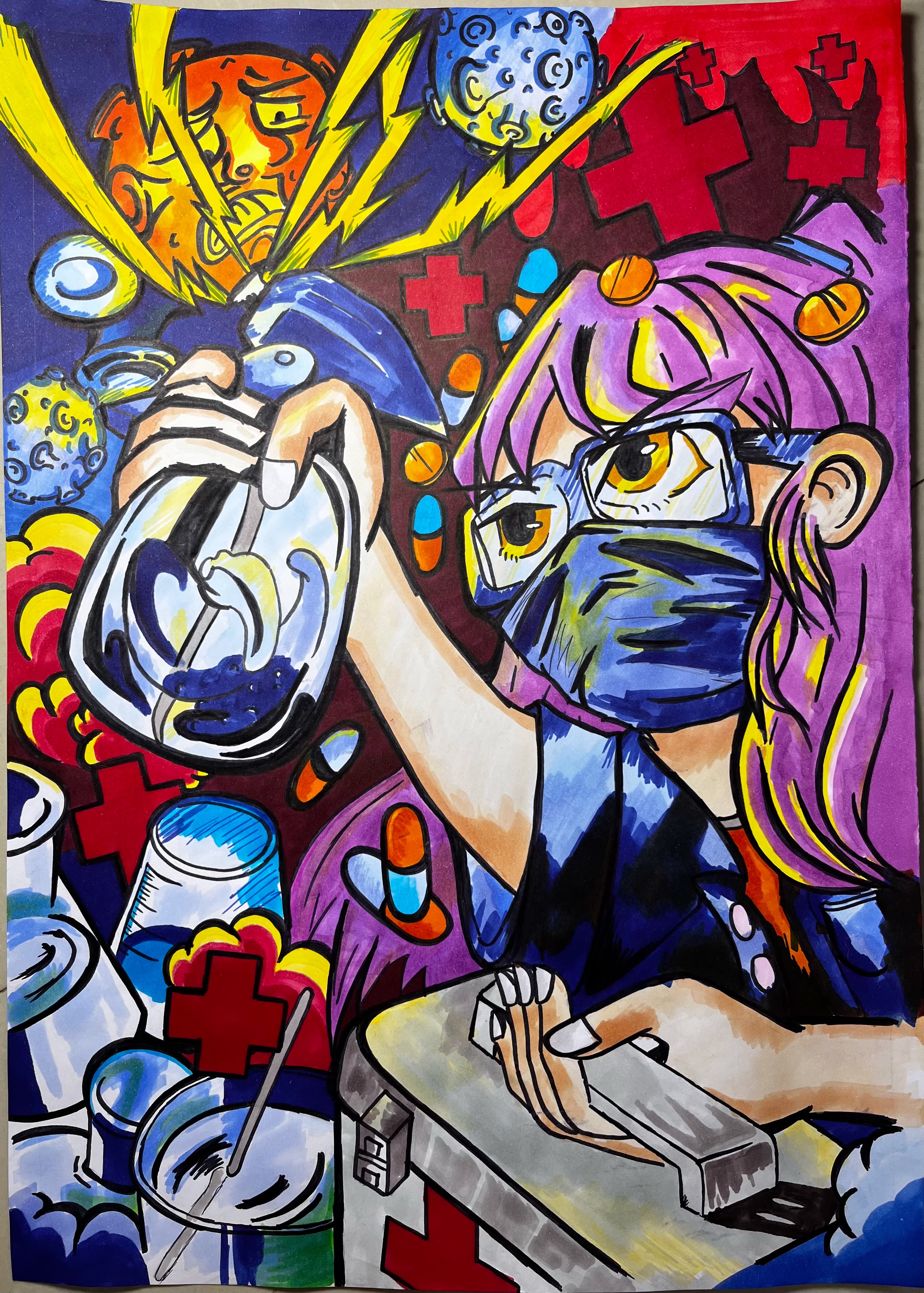 习近平总书记曾言,艺术本就来源于人民,来源于生活,一切有价值、有意义的文艺创作,都应该反映现实、观照现实,都应该有利于解决现实问题、回答现实课题。在这场抗疫“战斗”中,人文学子表现出高度的使命感和责任感,用手中的笔共同为全国疫情防控宣传工作助力加油,用手绘作品讴歌一线抗疫英雄无私奉献的精神。