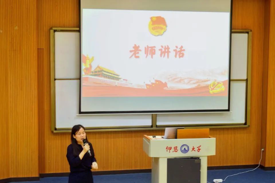 比赛队伍现场展示 岳秀文老师对本次活动的顺利开展给予了充分肯定,对各参赛队伍结合自身专业特色以及班级特色开展的团日活动表示赞许。岳秀文老师希望全体师生在学习工作中能够深入学习习近平总书记在庆祝中国共产主义青年团成立一百周年大会上的重要讲话精神,并提出三点要求与全体师生共勉。一要树立坚定的理想信念,不断学习习近平总书记关于党、团的一系列重要讲话精神,为工作学习打好基础;二要增强本领,加强专业知识的学习也要注重其他能力的提升,树立终身学习的意识,发挥示范作用;三要理论结合实践,积极参与学校活动、社会服务,发挥新时代青年大学生的作用。