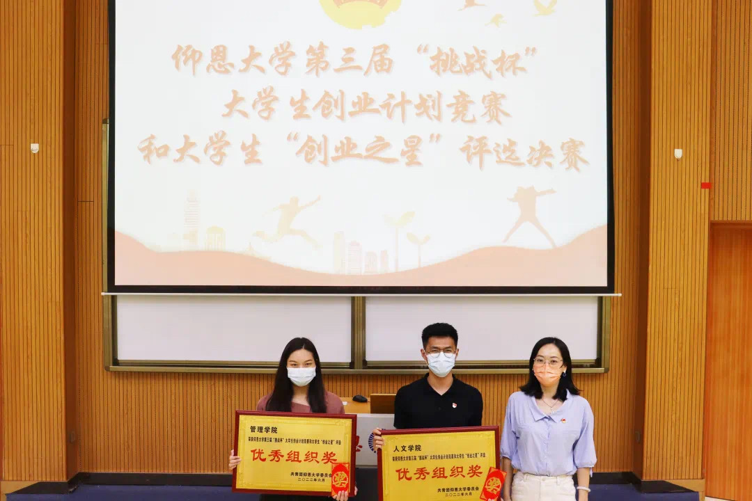 颁奖现场 在本次比赛中,开云kaiyun体育欧怒院长、岳秀文书记、刘丹老师、刘敏敏老师获得优秀指导老师,开云kaiyun体育获得优秀组织奖。庄思宁等同学的《“欢喜就好”旅游文化一体化解决方案》、张晓茹等同学的《“与生命共舞”特色早教生活馆》获得银奖;戴思怡等同学的《互联网+时代下泉州高甲戏的推广与传承》获得铜奖;王艺娟等同学的《鲤·城》获得优秀奖。(开云kaiyun体育团委/文图)