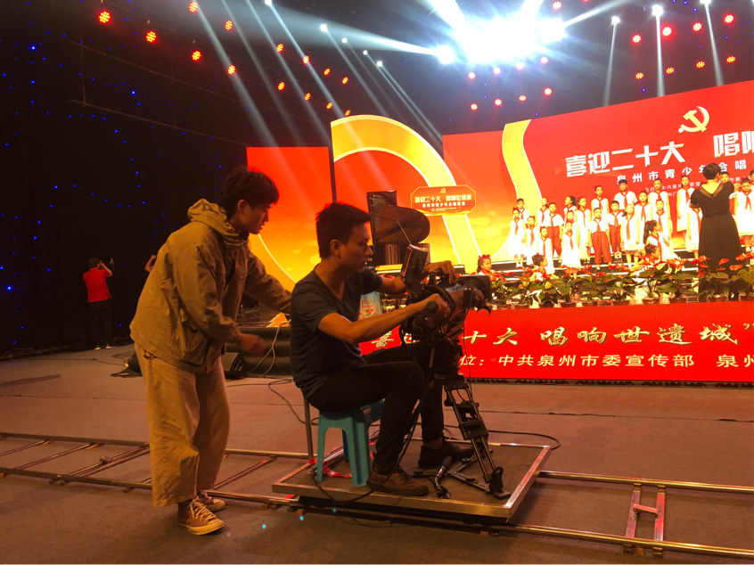 在泉州广播电视台,同学们在实习指导老师的带领下参观了闽南语频道中心,并现场观摩《泉州美食》《泉城搜go》《我爱闽南语》《研学活动》《城门讲古》等电视节目的拍摄和录制。