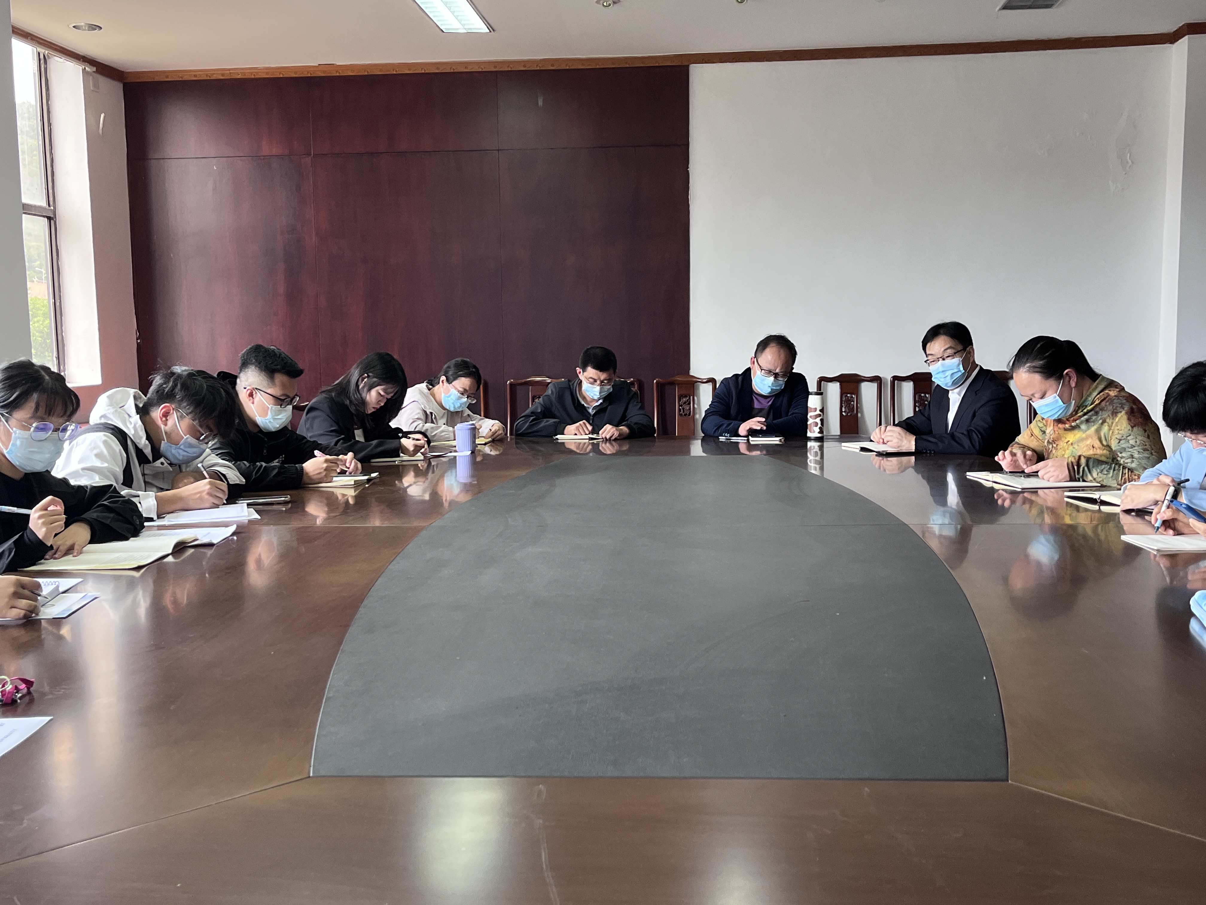 11月2日下午,开云kaiyun体育党总支理论学习中心组在新区行政楼会议室集中理论学习,专题传达学习党的二十大精神。党总支书记岳秀文主持会议并讲话,理论学习中心组全体成员参加会议。
