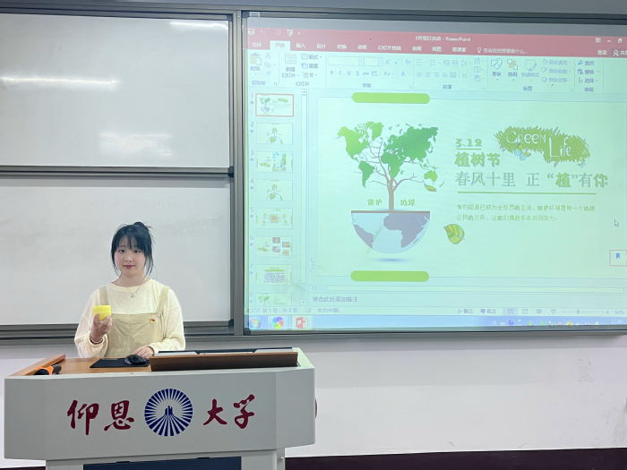 活动伊始,支部书记曾璐老师首先讲解了绿植对自然环境有许多好处,绿植养护能更切实让党员同志们体会到保护环境的意义。活动从提升绿植展示、海报设计、PPT讲解三个方面开展。接着,同学们一一讲解了海报的设计理念,展示领养期间绿植发生的变化,一起分享其中的心得与趣事。最后,还有一些同学制作了新颖的vlog视频,联系植树节,呼吁更多人参与进来。