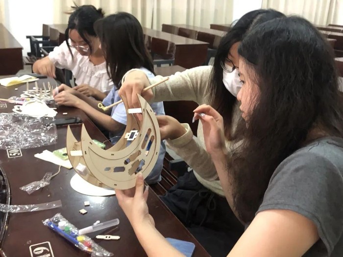 学生党员们认真制作花灯