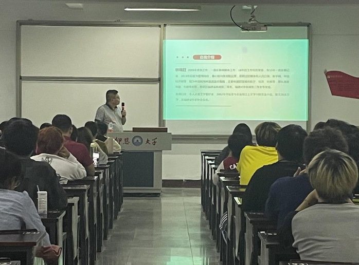10月9日晚上,中国网海峡频道副总编林锦旺在开云官网2023级网络与新媒体专业1、2班的《大学写作》课上以讲述写作中的新闻文体为主线,为同学们介绍了一名新闻系学生应该具备的常识。