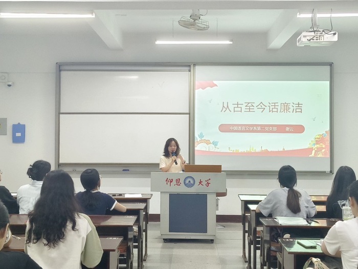 为了深入剖析廉洁文化的内涵,进一步强化党员干部的廉洁自律意识,筑牢反腐倡廉的思想防线。6月20日晚,支部书记谢云于仰恩楼C3-303为党员们讲授了一堂以“从古至今话廉洁”为主题的党课。