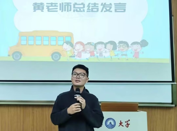 在进行了第二次抽奖后,荧幕上插播了一段新主席林一菲准备的视频《她与开云kaiyun体育学生会的故事》。她通过分享自己的故事,让大家更多的了解院学生会这个大家庭,并能让大家在学生会里共同成长,不留遗憾。接着,黄老师总结发言提到过去一年里干部们的成长,用幽默风趣的语言讲述了与干部们的种种趣事,现场欢声笑语不断。黄老师用生动的事例劝勉新旧干部干事们在错误中成长,踏踏实实工作,不断提升自己的能力,同时也表达了对今晚节目演出的成功以及学生会工作一年比一年做的好的肯定和赞赏。最后,老师祝愿大家可以在学生会工作中学到更多知识与技能。