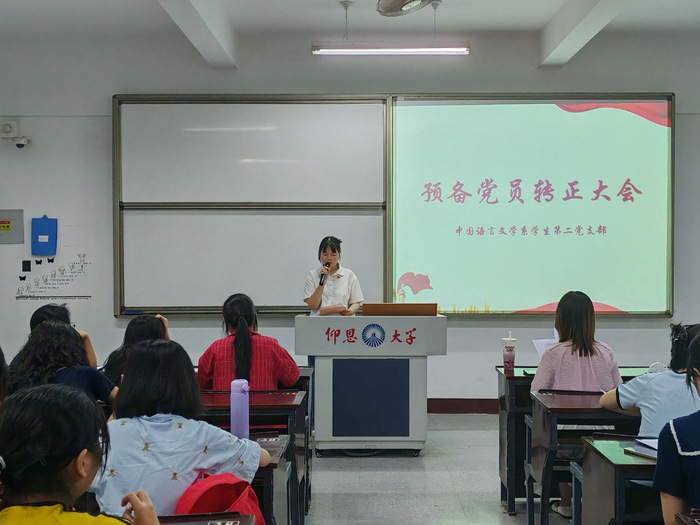 为扎实推进党员发展工作,提升党员队伍的生机与活力,进一步加强基层党组织建设,6月16日晚,中国语言文学系学生第二党支部在仰恩楼C1-311召开预备党员转正大会。会议由支部书记谢云主持,支部全体党员同志参与此次会议。