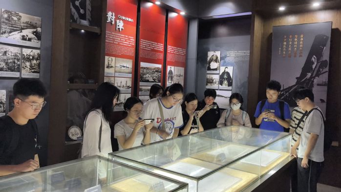 四大展馆内,实践队员们在史料陈列与场景复原中,深入了解马江海战的起因、经过与影响。在文物拍摄环节,队员们分工协作,用镜头聚焦海战相关文物,捕捉历史细节,专注记录先辈们的爱国精神。