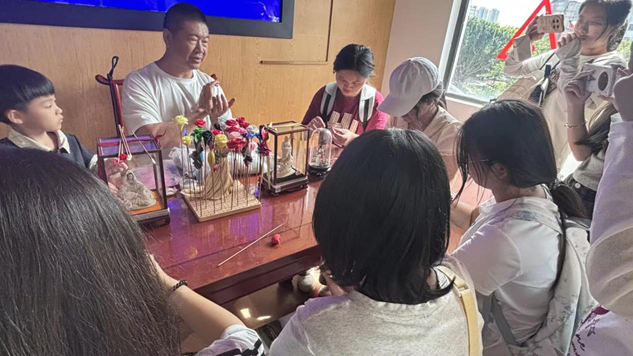 在随后的非遗实践体验环节中,队员们在匠人指导下完成锡雕作品;妆糕人体验区,大家发挥创意,捏出各式造型,现场充满欢声笑语。