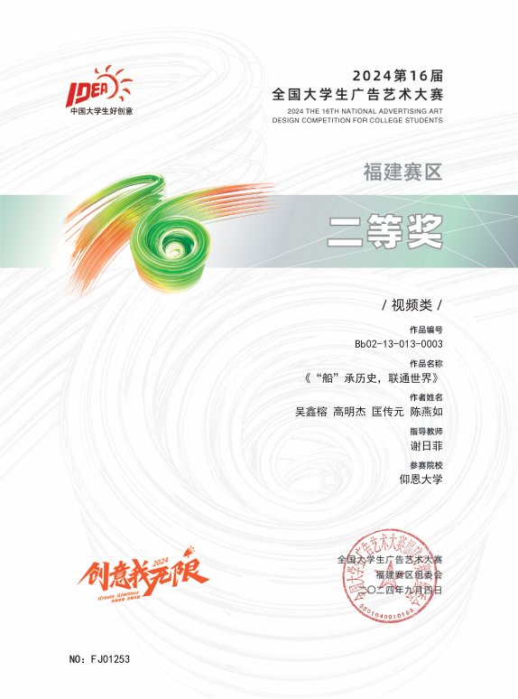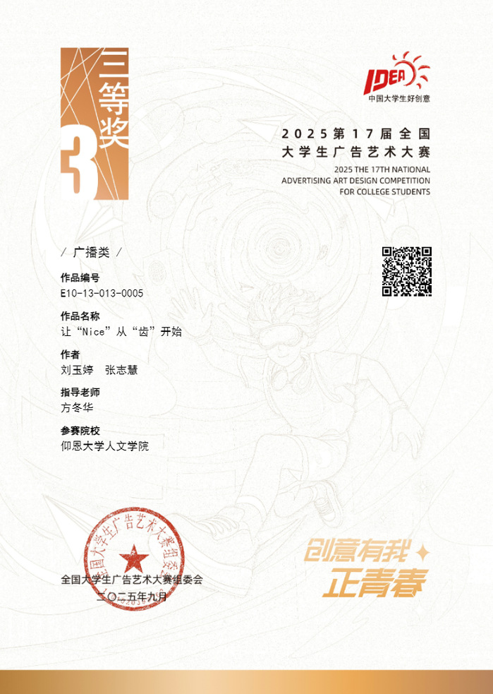 该赛事以企业真题为导向,提升学生创新与实践能力,推动广告教育改革,助力数字文旅等领域发展。开云官网学子获国家级二等奖2项;省级奖项共16项,其中一等奖4项,二等奖1项,三等奖11项。