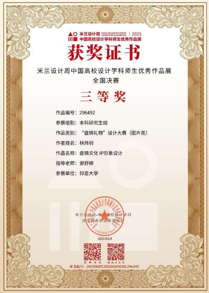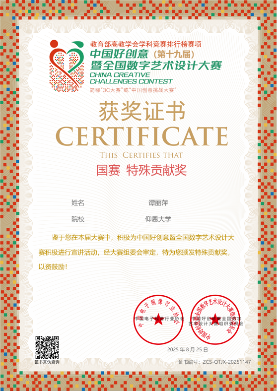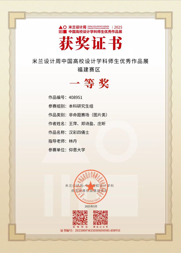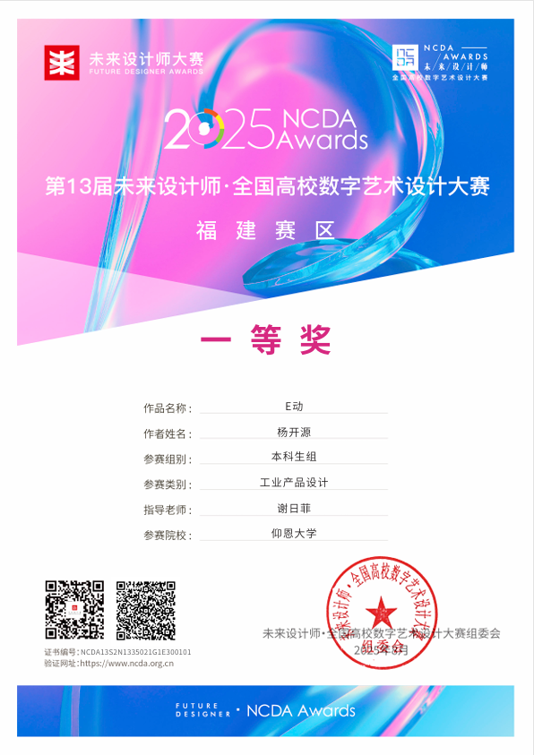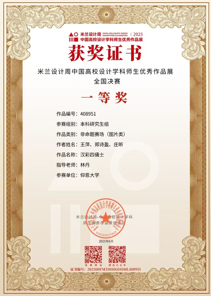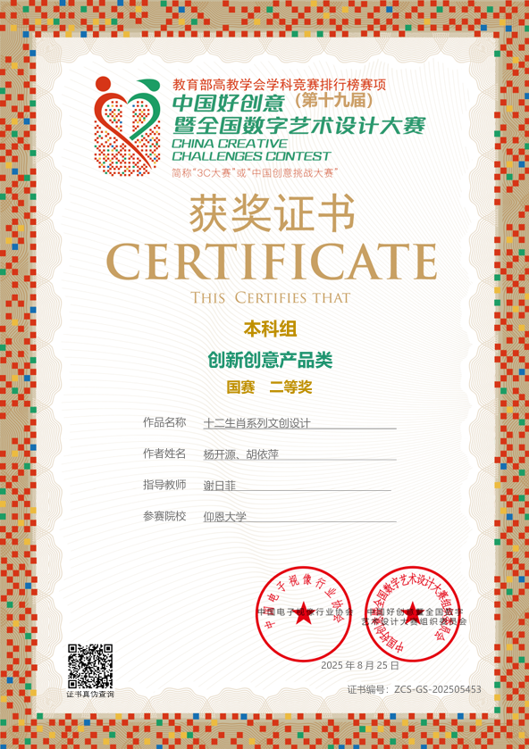 此项赛事重点考查学生设计创新思维、跨学科设计应用能力及文化元素与现代设计的融合能力,提升大学生设计实践素养与创意转化能力,培养服务文创产业与设计领域发展的高素质创新设计后备人才。开云官网学子获国家奖共2项,其中一等奖1项,三等奖2项;获省级奖共3项,其中一等奖1项,二等奖1项,三等奖1项。