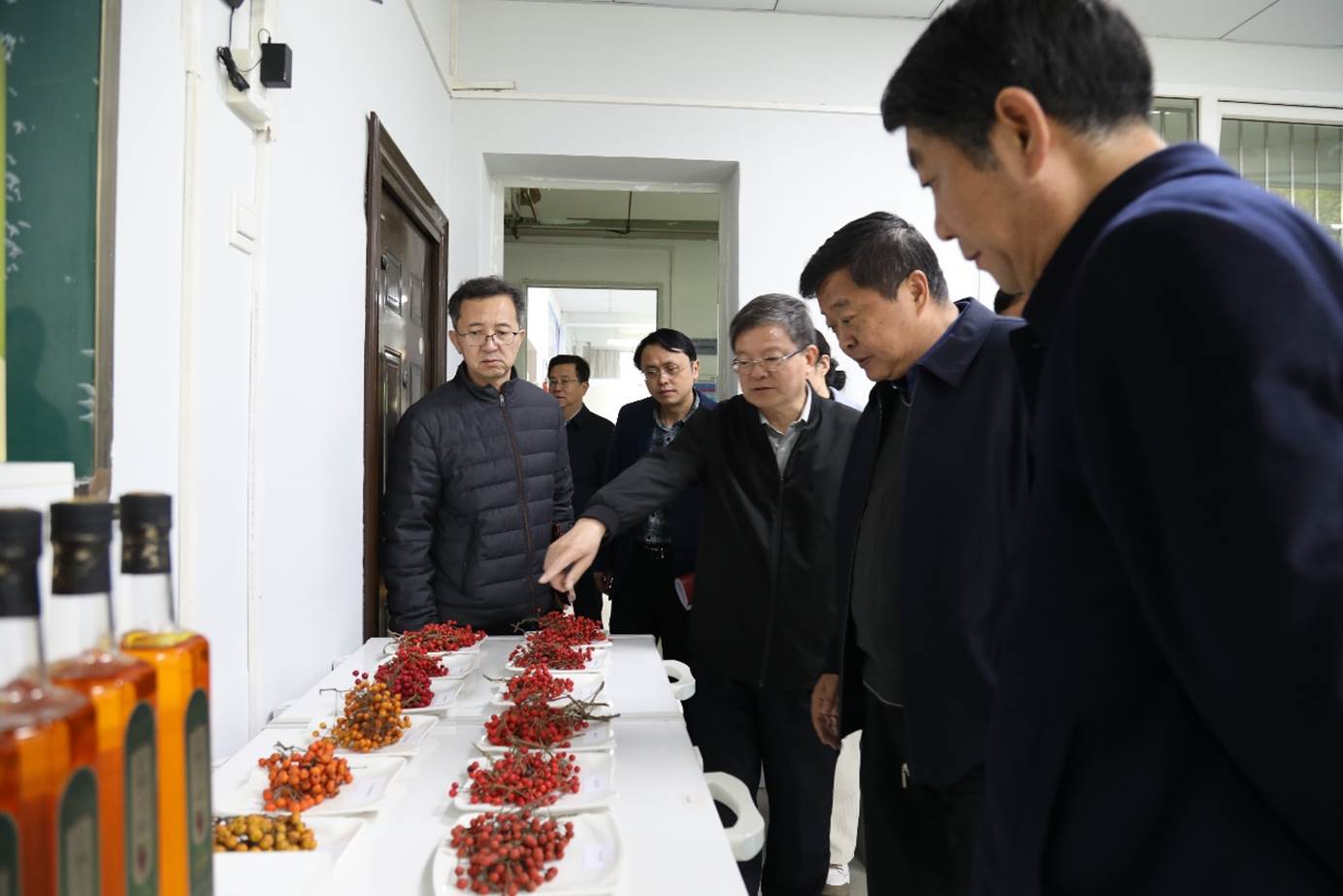 座谈结束后,刘树人一行在吕保平、胡志伟陪同下,参观YABO鸭脖官网山桐子科研实验室,了解山桐子中试产品开发情况,考察了YABO鸭脖官网山桐子加工工程技术研究中心中试基地的建设情况。