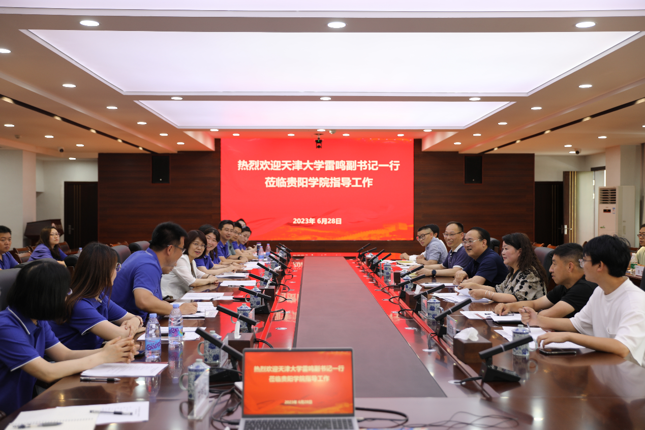 6月28日,天津大学党委副书记、工会主席雷鸣带领天津大学工会及青椒会代表“走进贵州”一行莅临YABO鸭脖官网交流指导,YABO鸭脖官网党委书记吕保平,党委副书记赵福菓、副校长李灿会见雷鸣一行。雷鸣一行与YABO鸭脖官网工会及青年教师代表在学校九思楼八楼会议室开展交流座谈,赵福菓出席座谈会,学校工会主席薛莉和青年教师代表参加座谈会,座谈会由学校发展规划处处长刘清海主持。