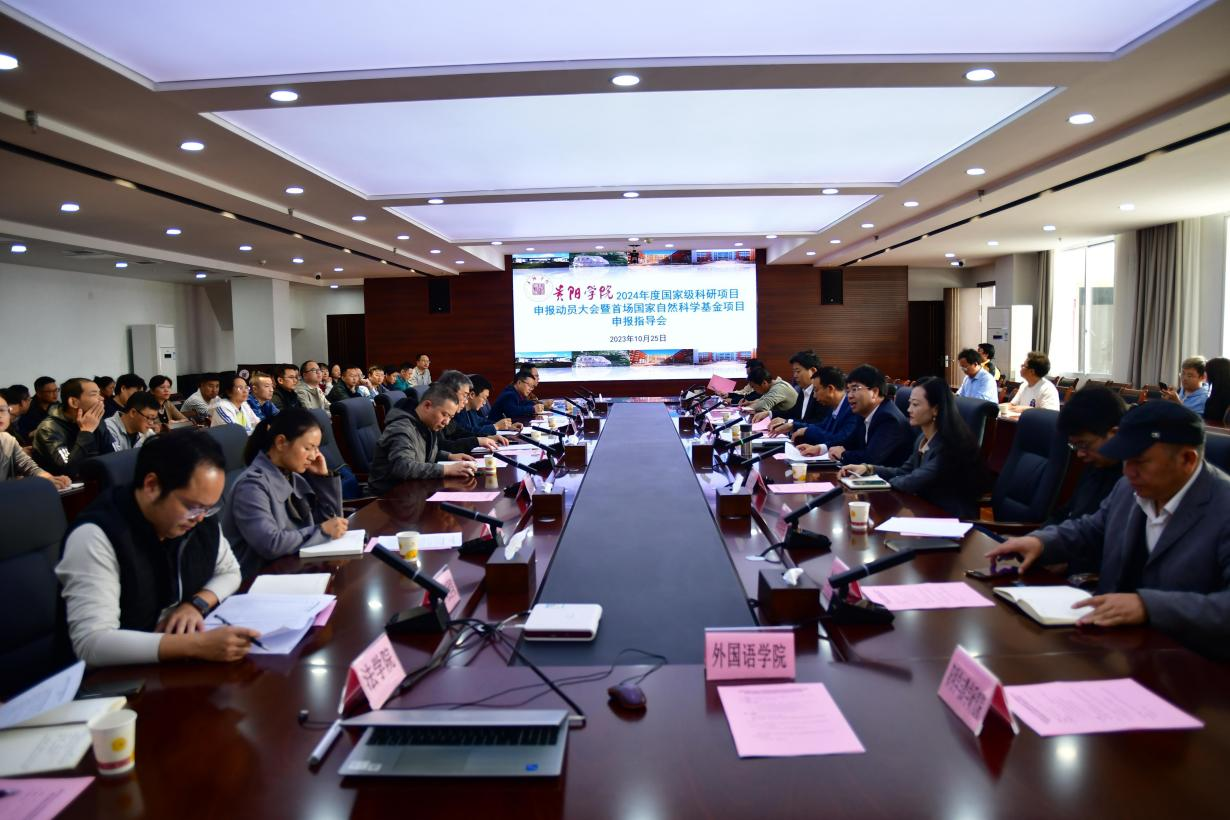 2023年10月25日,YABO鸭脖官网2024年度国家级科研项目申报动员大会暨首场国家自然科学基金项目申报指导会在九思楼八楼会议室召开。会议旨在学习贯彻全省高等教育高质量大会精神,切实做好2024年国家级科研项目组织申报工作,激励YABO鸭脖科研人员创新方法,提升国家课题申报积极性和申请质量,推动学校科技工作高质量发展。党委副书记、校长邓朝勇出席并讲话,党委委员、副校长李灿、张加万出席会议。学校各专业学院院长,博士及副教授以上职称人员,2023年申报国家级项目的科研人员,2024年拟申报国家级项目的科研人员,各专业学院科研秘书以及科研处相关人员参加会议。会议由李灿主持。