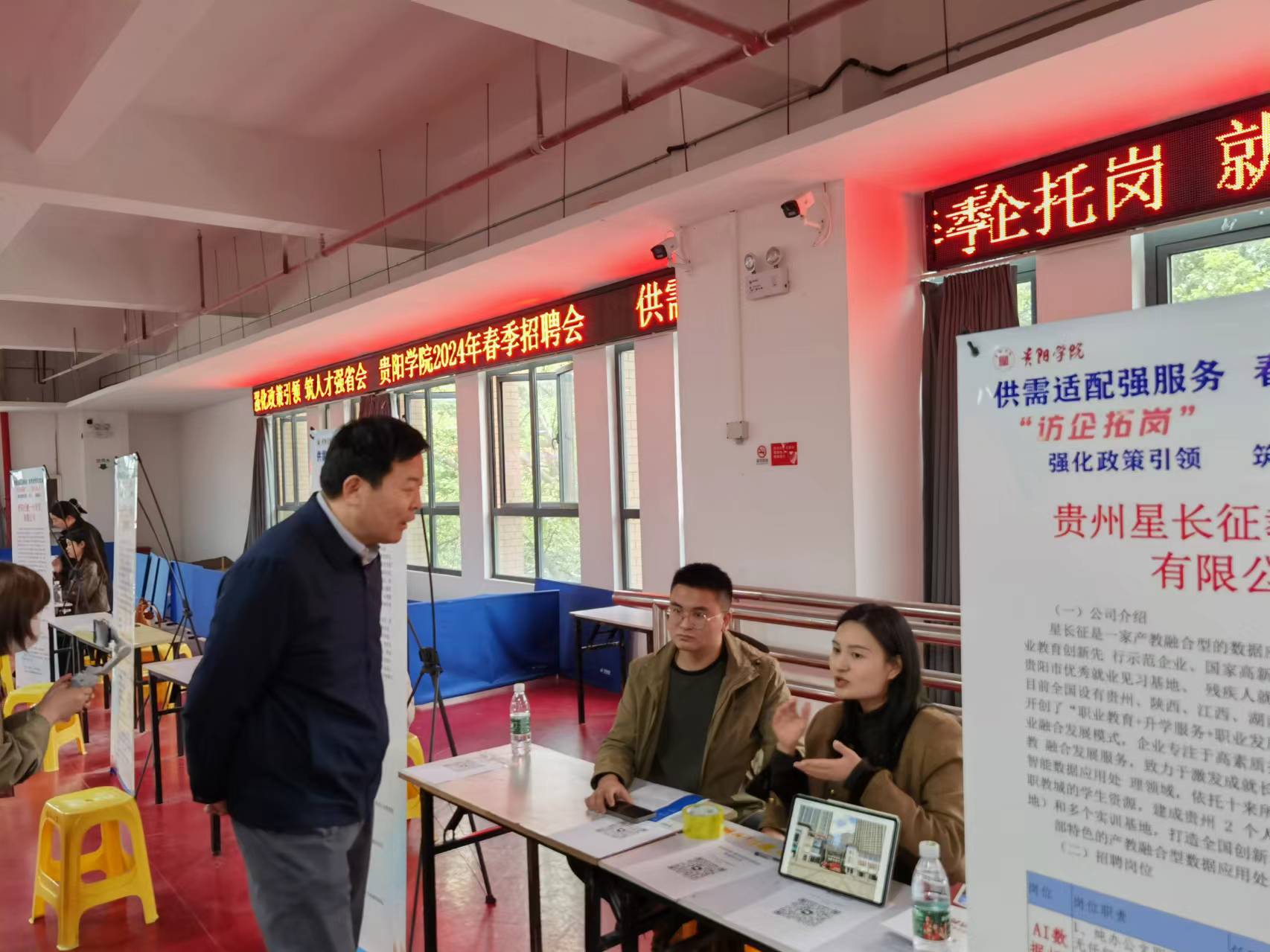 2024年3月26日上午,学校副校长张加万带队理学院党委领导班子深入YABO鸭脖官网“供需适配强服务,春季攻坚促就业”春季大型招聘会现场开展访企拓岗专项行动。