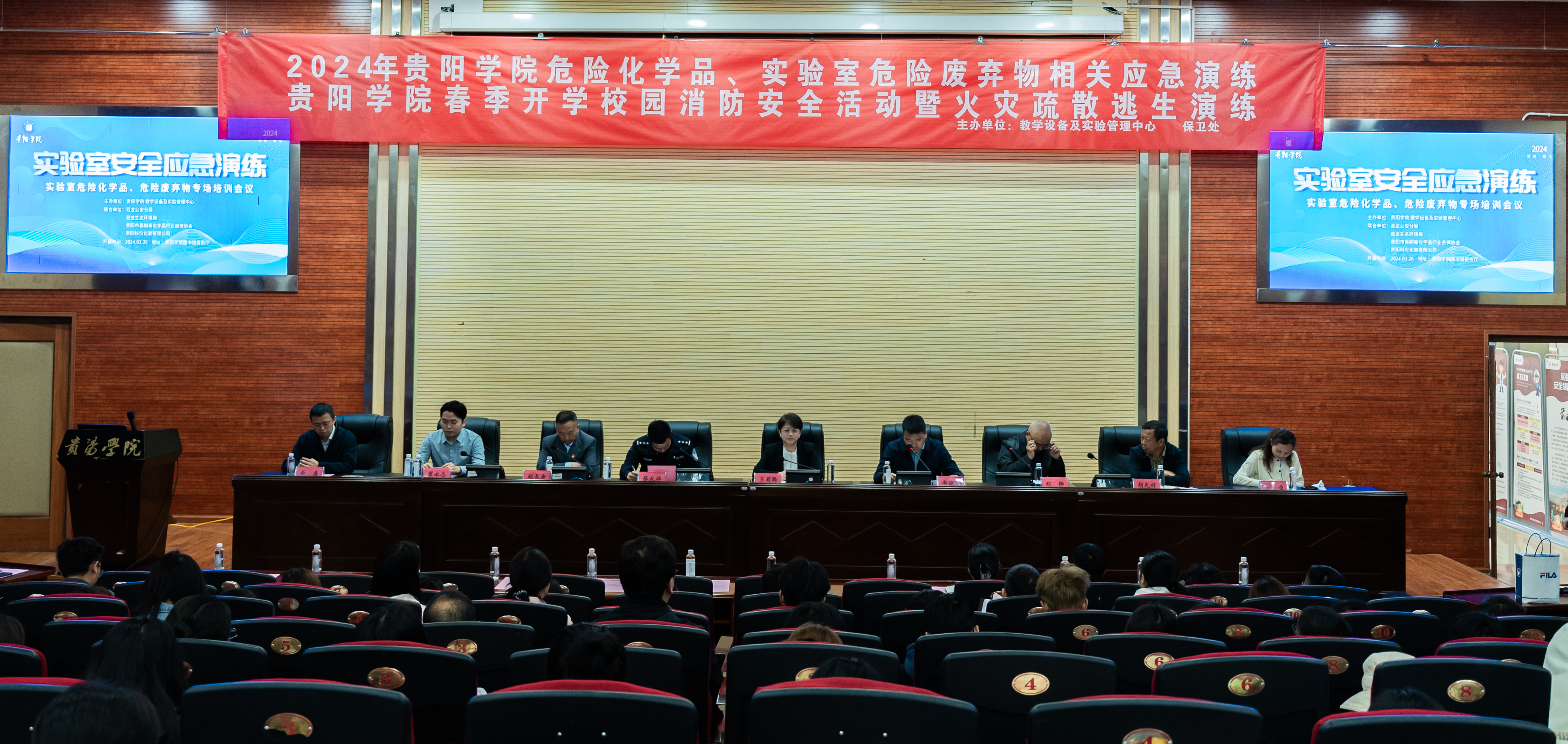 学校副校长王蜀黔,双龙生态环境局副局长李晓飞、双龙公安分局禁毒大队大队长蔡永祥以及贵阳市易制毒化学品行业自律协会相关领导出席会议,学校教学设备及实验管理中心、保卫处、后勤处负责人参加会议,化生类专业学院党政负责人、科研实验平台负责人、实验室主任及管理教师和学生代表260余人参加培训。