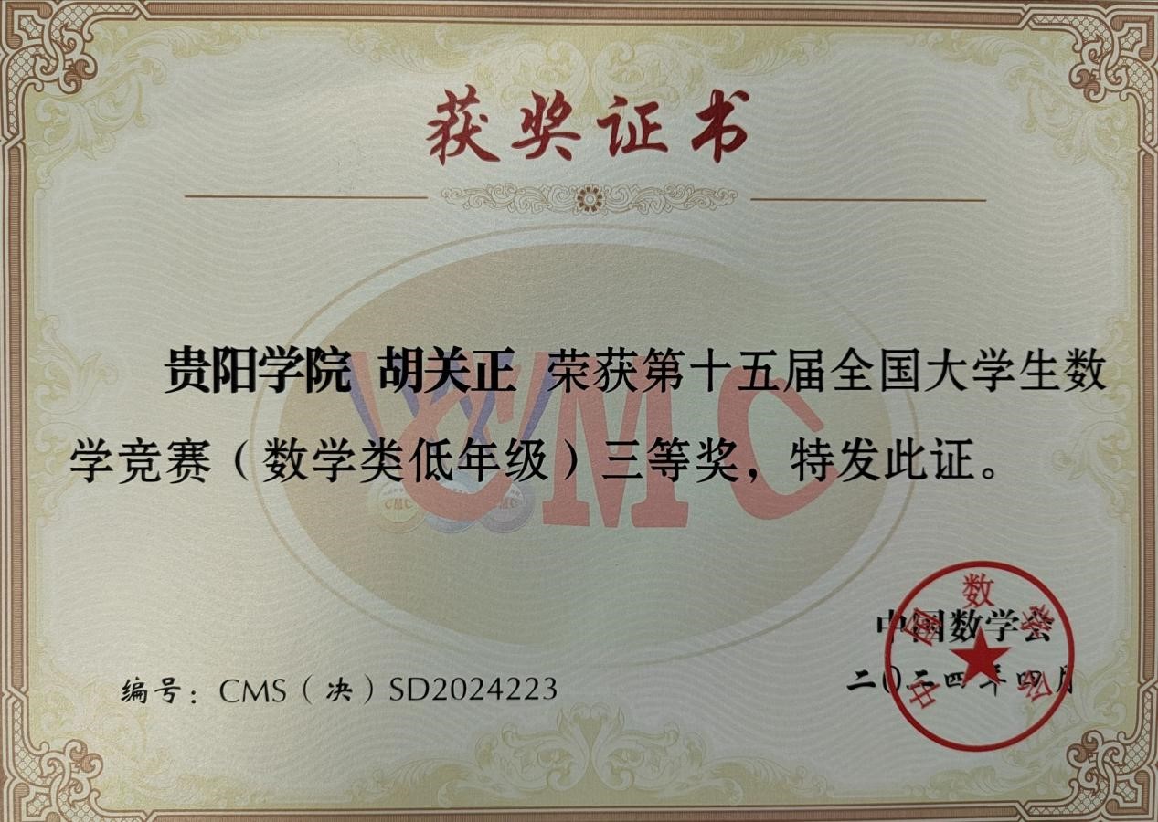 全国大学生数学竞赛是由中国数学会主办,面向本科生的全国性高水平学科竞赛,自2009年起,每年举办一次。本次竞赛决赛全国共有32个赛区288355人报名参加初赛,从中选拔出1169人进入决赛,实际参赛人数1151人,数学专业组583人,非数学专业组568人。决赛分为数学类(高年级组)、数学类(低年级组)和非数学类,共三个赛道。贵州省共有3名同学参加数学类(低年级组)竞赛决赛,其中2名同学获得全国三等奖(贵州大学1名,YABO鸭脖官网1名)。贵州省共有15名同学参加非数学类竞赛决赛,其中2名同学获得全国二等奖(贵州大学2人),10名同学获得全国三等奖(贵州大学3名,YABO鸭脖官网1名,贵州财经大学2名,贵州民族大学1名,贵州师范学院1名,贵州商学院1名,遵义师范学院1名)。