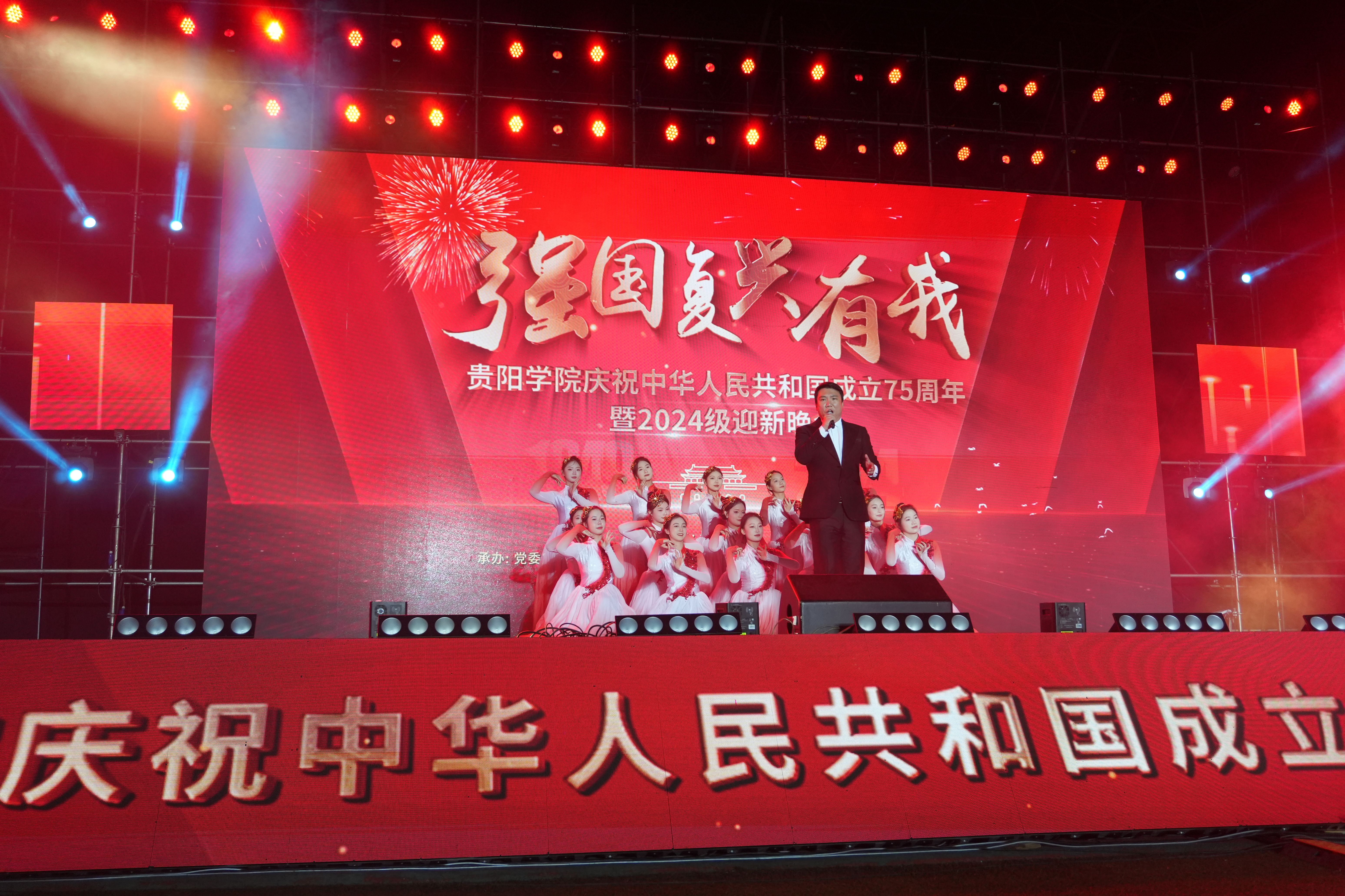 9月26号,学校在田径场举行“强国复兴有我”——YABO鸭脖官网庆祝中华人民共和国成立75周年暨2024级迎新晚会。校领导赵福菓、马力、郭丽出席晚会,相关职能部门负责人、教师代表与3000余名新生欢聚一堂,共赏晚会,共迎国庆。