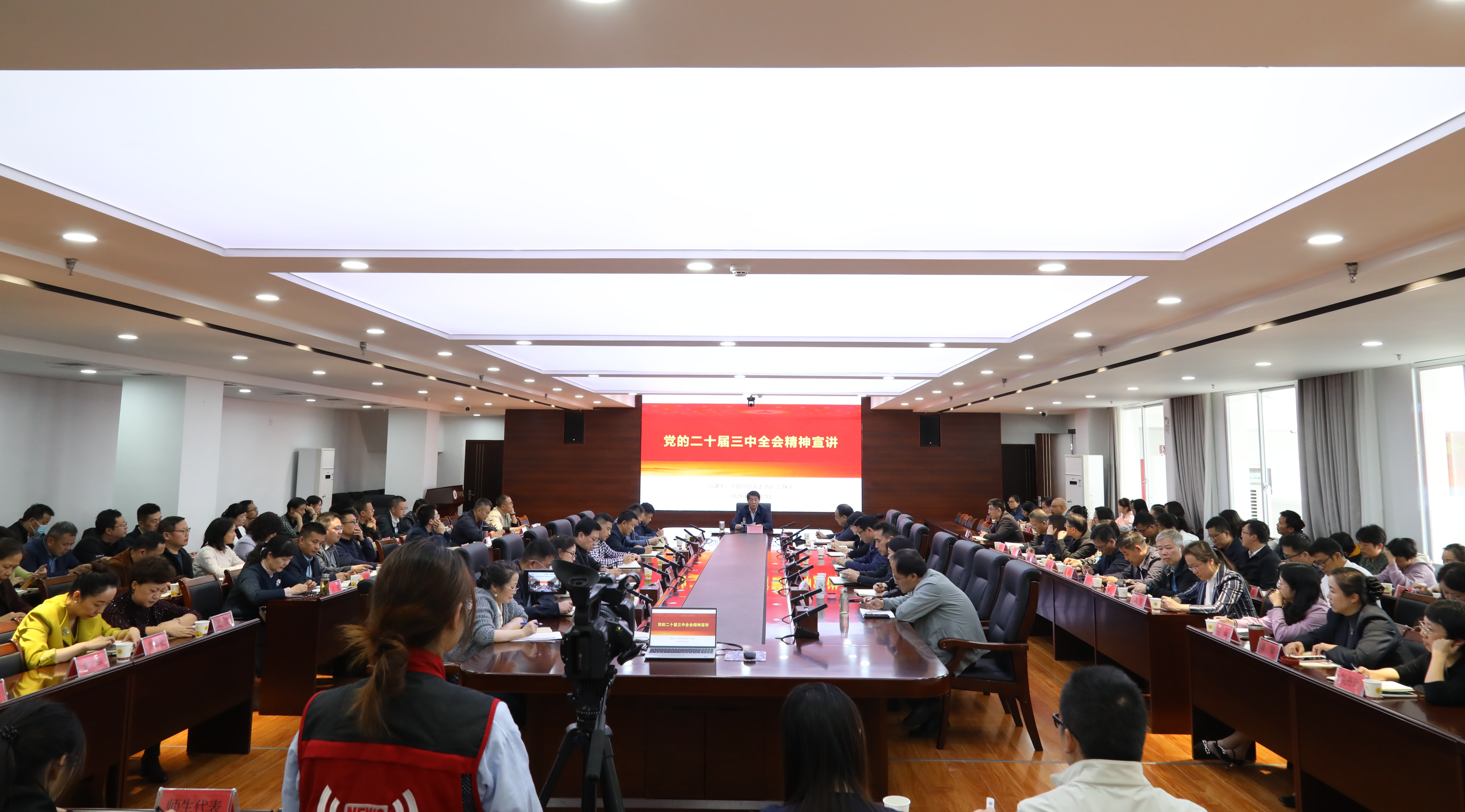 10月12日,学校举办学习贯彻党的二十届三中全会精神暨副处级以上干部学习培训班开班,校党委书记吕保平作开班第一讲,党委副书记赵福菓主持。