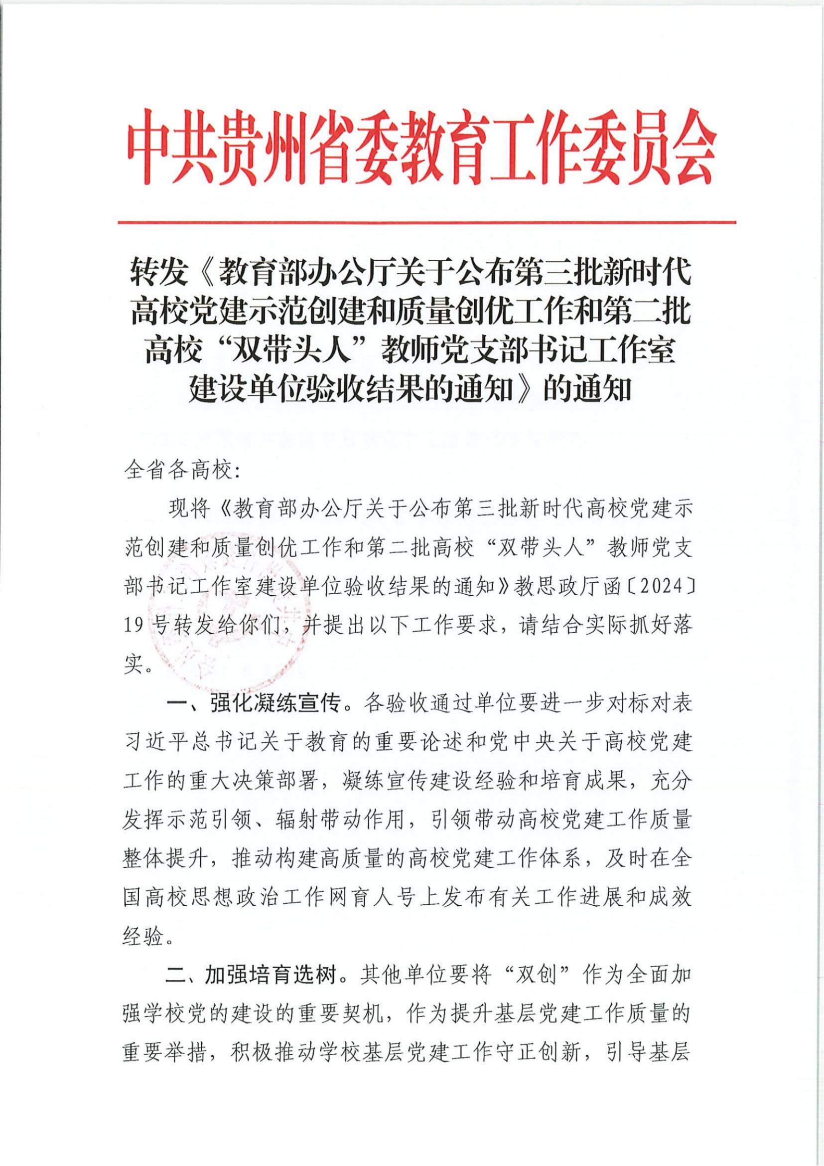教育部办公厅下发《教育部办公厅关于公布第三批新时代高校党建示范创建和质量创优工作和第二批高校“双带头人”教师党支部书记工作室建设单位验收结果的通知》(教思政厅函〔2024〕19号),YABO鸭脖官网生物与环境工程学院教师党支部作为第三批“全国党建工作样板支部”建设单位验收通过。