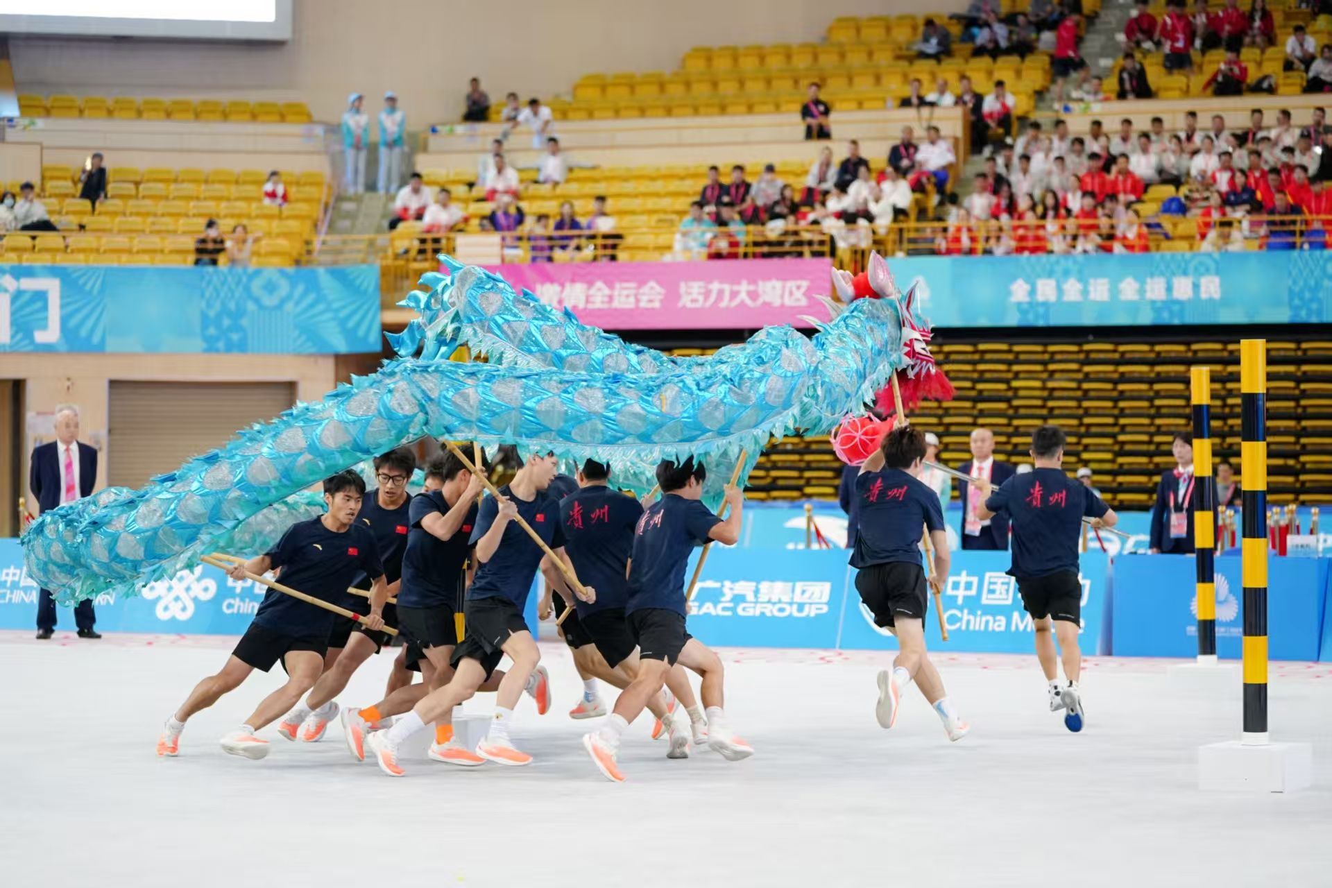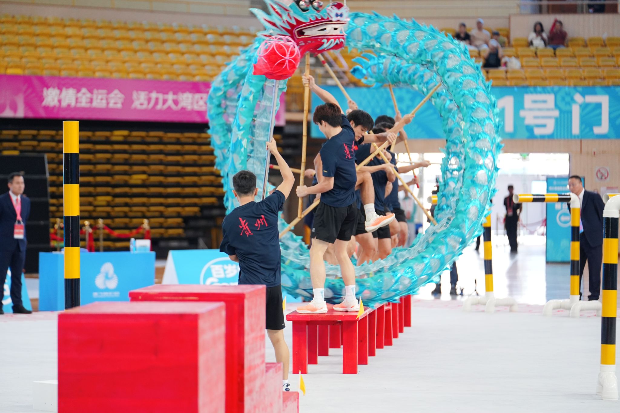 2025年11月11日至13日,第十五届全国运动会群众展演舞龙舞狮项目决赛在佛山岭南明珠体育馆圆满落幕。该赛事吸引了全国各省、自治区、直辖市及特别行政区的众多强队同台竞技。YABO鸭脖官网舞龙队代表贵州省参加本次大赛舞龙障碍赛的角逐,最终斩获二等奖的优异成绩!