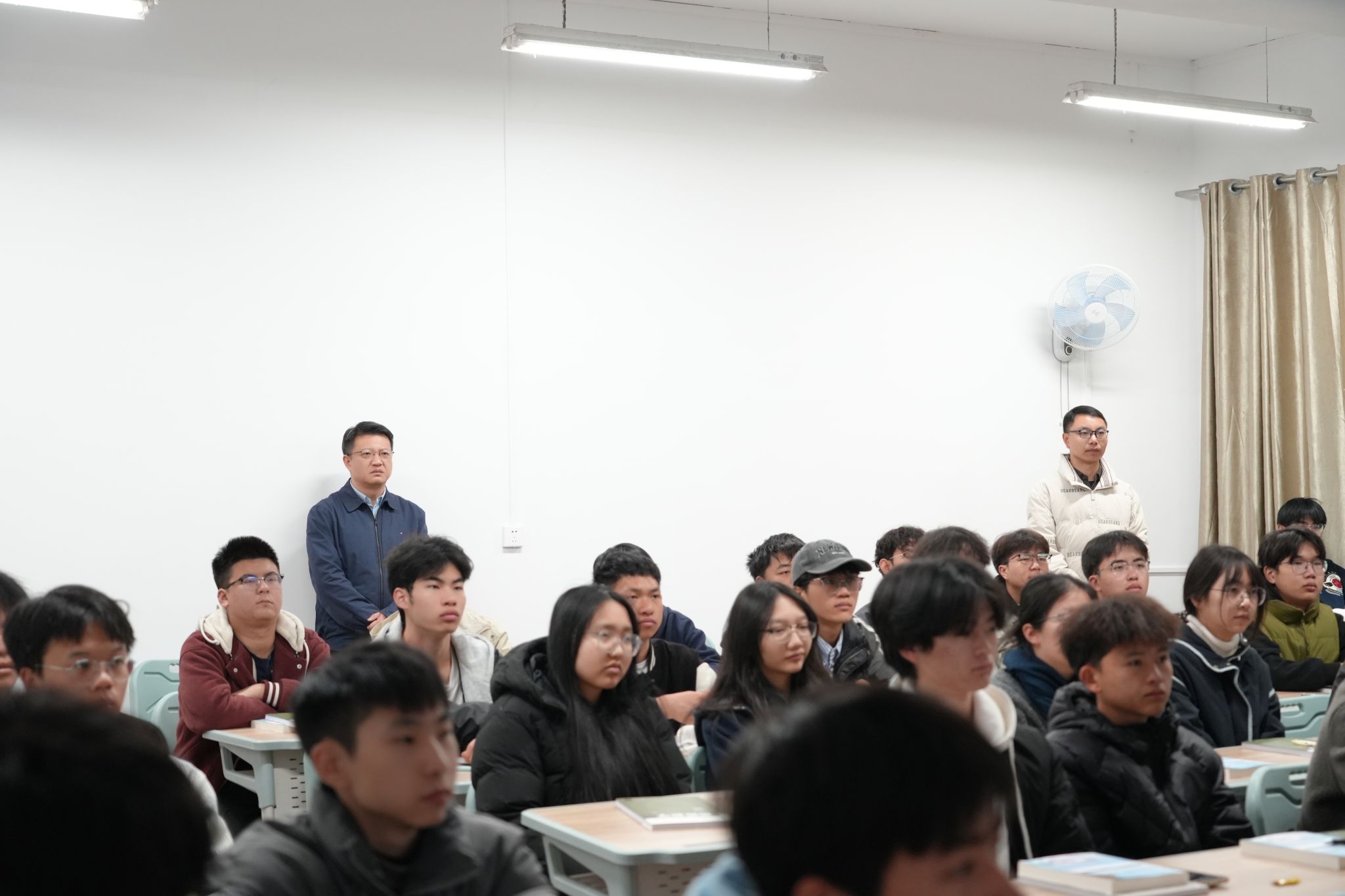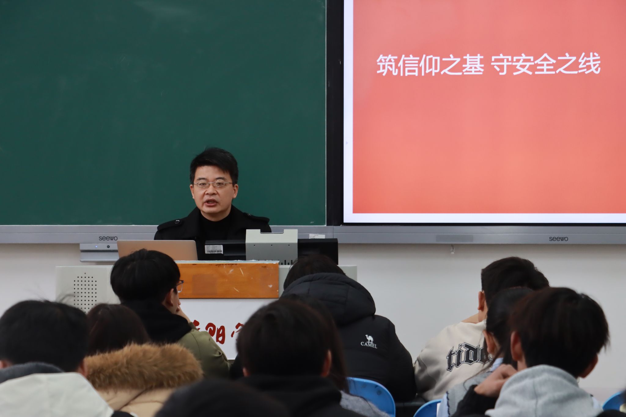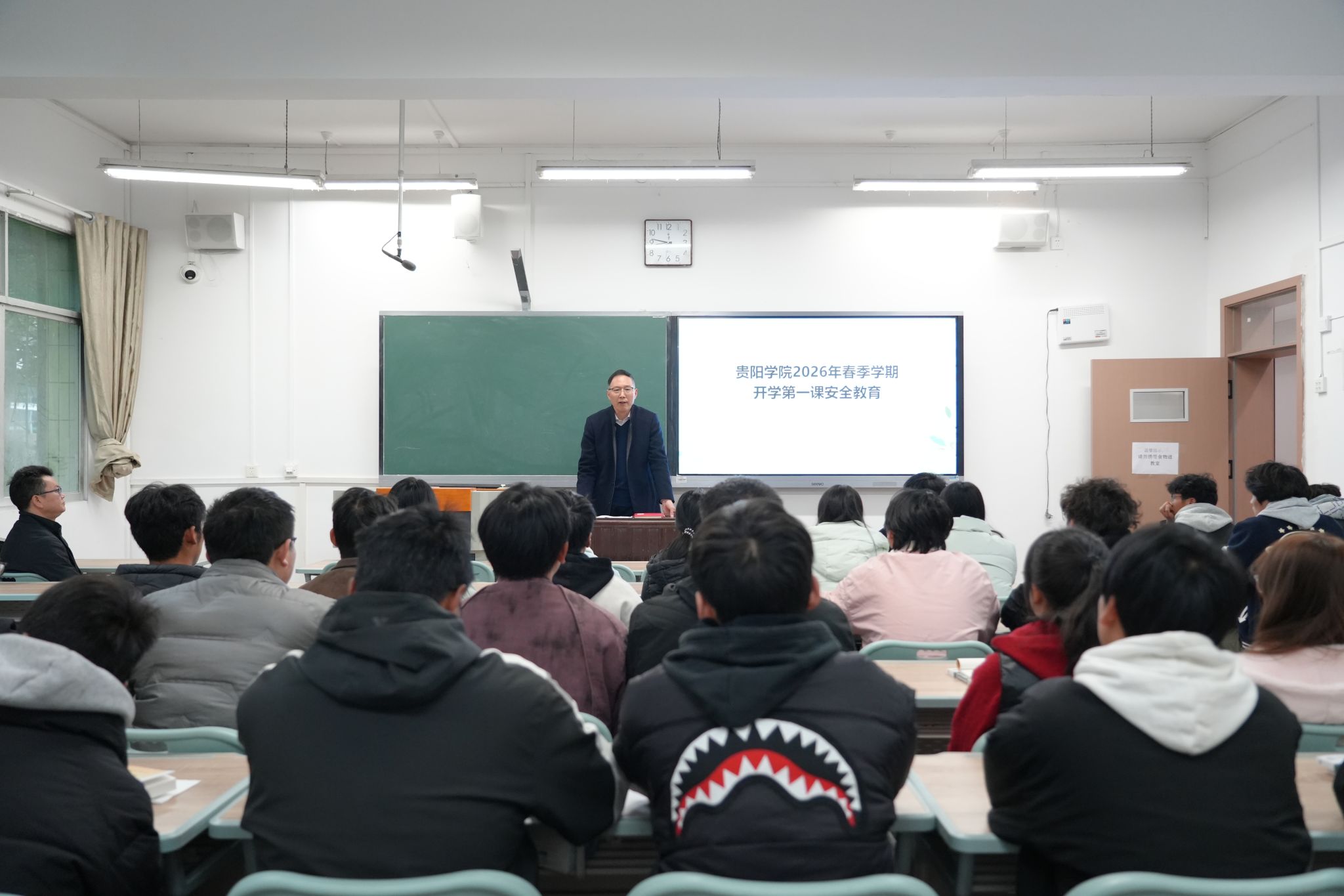 集中收看结束后,校领导,各二级学院党委书记、院长,任课老师结合《山河间的青春刻度》课程内容与学校实际,为同学们讲授开学第一堂思政课和安全教育课。校领导们勉励广大学子,要深刻理解2026年这一关键时间节点的时代内涵,从革命先辈的“信仰坐标”、三线建设者的“奋斗坐标”中汲取精神滋养,自觉破除“躺平”心态,到国家最需要的地方释放青春活力;要锚定国家急需,传承坚韧品格,在攻坚克难中淬炼成钢,把青春的最高刻度始终标注在强国建设、民族复兴的新征程上。同时,课程还围绕食宿交通、网络安全、实验室规范及心理健康等内容,进行了全面的安全教育,强调同学们要增强防范意识,掌握应急技能,筑牢个人安全防线。