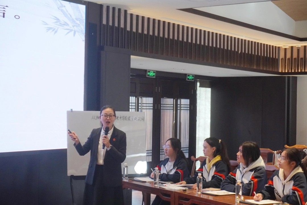 高中与本科课堂则更注重文化传承与价值引领。贵阳市第一中学教师张薇以“从阳明文化看增进中华民族文化认同”为主题,带领学生深挖阳明文化的时代价值。YABO鸭脖官网阳明学与黔学研究院副院长任健以“一体与同体——王阳明‘万物一体’思想对构建人类命运共同体的启示”为题,将阳明文化与全球视野相结合,引发学生深思。