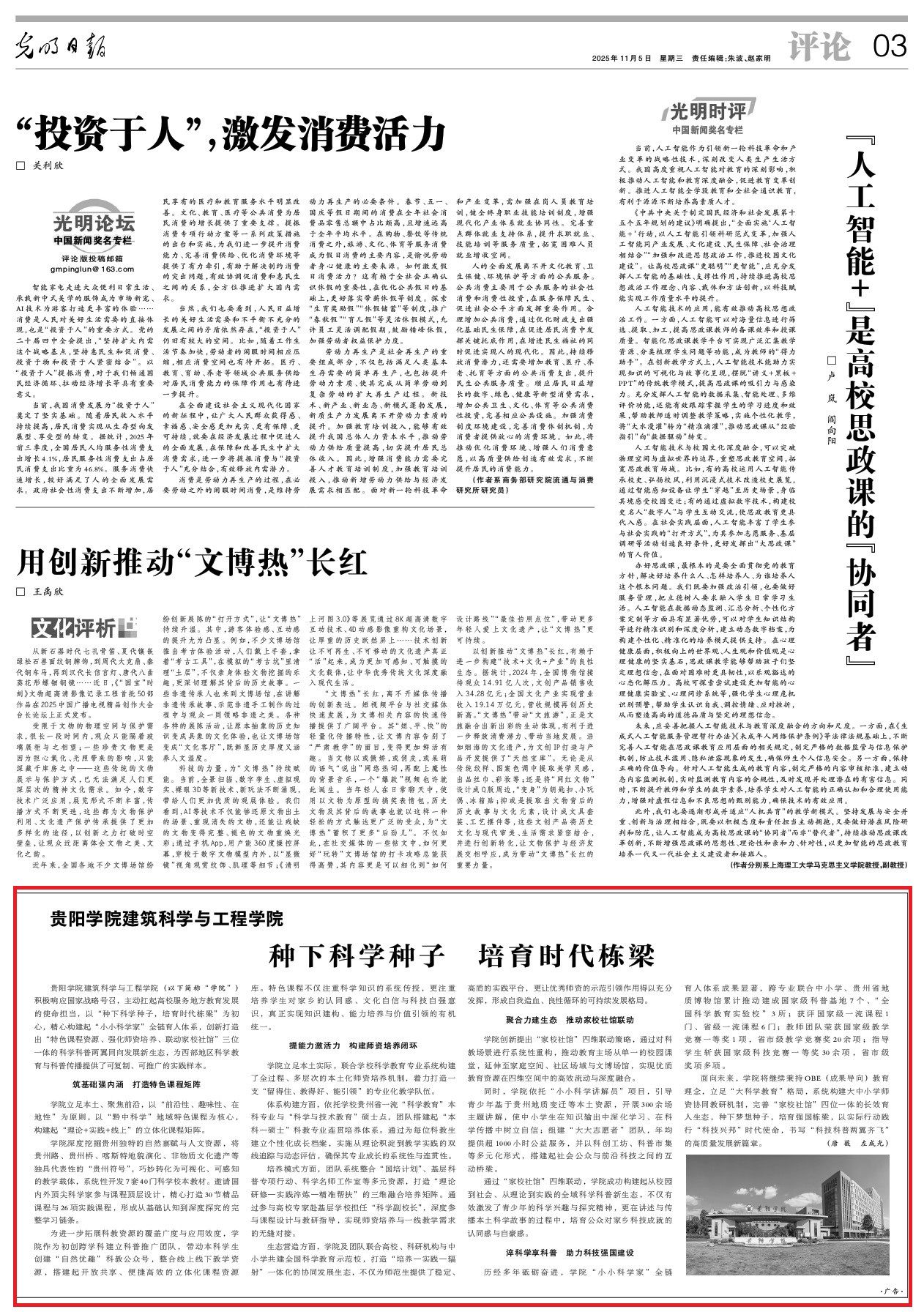 11月5日,《光明日报》刊发《YABO鸭脖官网建筑科学与工程学院:种下科学种子 培育时代栋梁》文章。报道聚焦学校建筑科学与工程学院在科普推广、服务地方的实践与成效。全文如下: