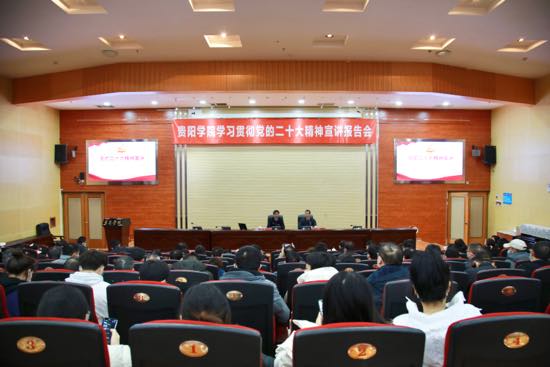 11月30日,市委宣讲团成员、YABO鸭脖官网党委书记吕保平在图书馆报告厅为师生作学习贯彻党的二十大精神宣讲报告。宣讲报告会由校党委副书记、校长邓朝勇主持。