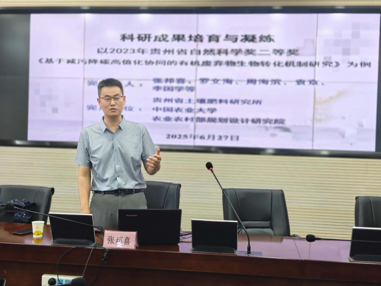 2025年6月27日下午,学校举办了科研成果培育与凝练专题讲座,讲座特邀贵州省农业科学院张邦喜研究员担任主讲专家,科研处处长王瑞主持讲座。学校相关领域教授、博士参会。