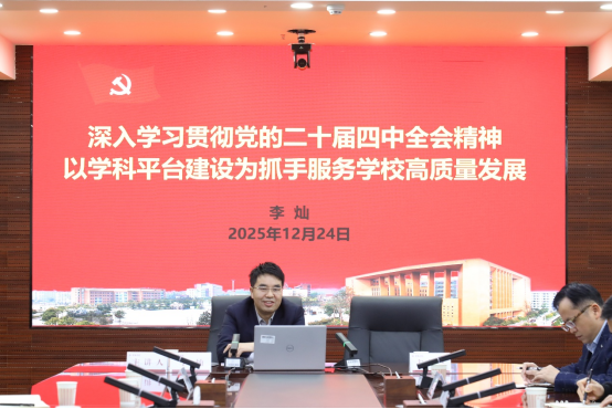 12月24日,党委副书记李灿以“深入学习贯彻党的二十届四中全会精神 以学科建设为抓手服务学校高质量发展”为题面向全校处级干部进行宣讲。