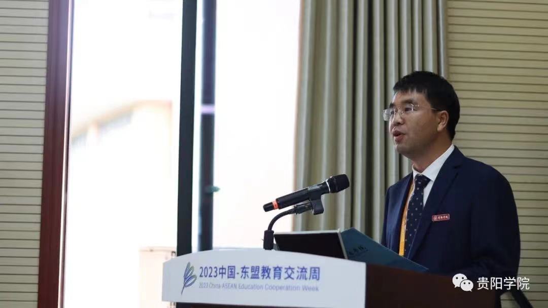 中泰高等教育合作联盟秘书长鄂学文致开幕辞。“本次‘中外学子交流论坛’结合‘知行贵州’丝绸之路青年交流计划,为参加本次活动的学生们提供了感知贵州、了解中国的机会,为中外学生提供了一个相互学习、交流互鉴的平台,得到了参与学生的欢迎。”论坛开幕式上,鄂学文对论坛的举办表示祝贺。鄂学文表示,期望广大中外青年学子利用这次活动的机会广泛结交朋友,交流思想,建立友谊,凝聚共识,并亲身体验大美贵州和悠久中华文化的精髓,做构建人类命运共同体的推动者和建设者。